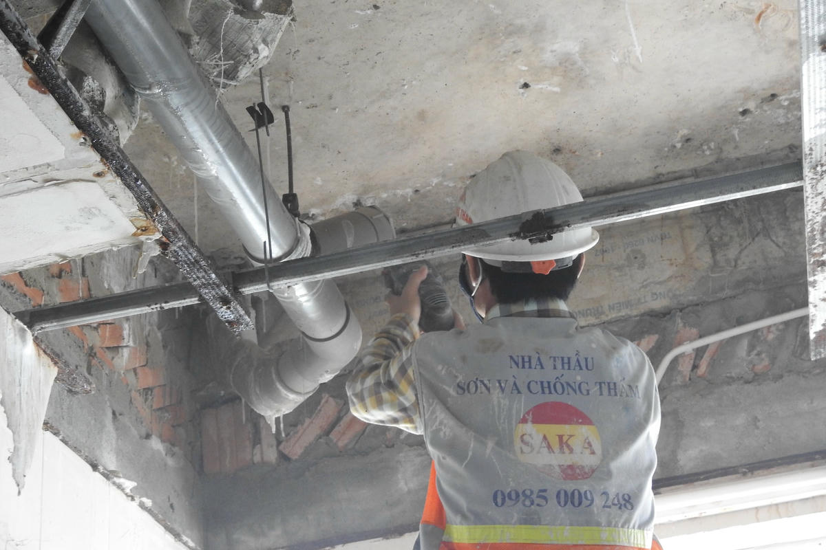 Sáng 6/9, do trời mưa nên việc thi công hạ tầng tiêu, thoát nước ngoài trời tạm dừng. Tuy nhiên bên trong các phòng ký túc xá, nhà thầu thi công các hạng mục, kết cấu của Bệnh viện dã chiến, vẫn khẩn trương thi công để sớm bàn giao cho Bệnh viện Đà Nẵng để bố trí giường bệnh, lắp đặt thiết bị y tế phục vụ điều trị bệnh nhân Covid-19