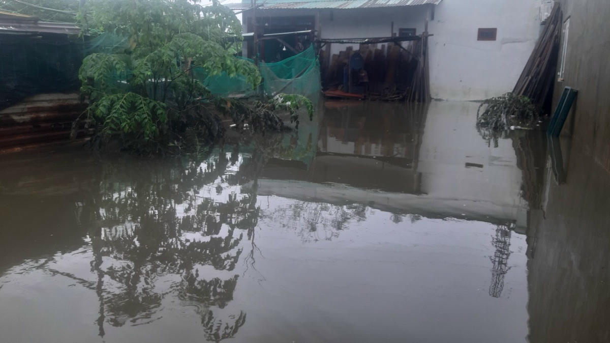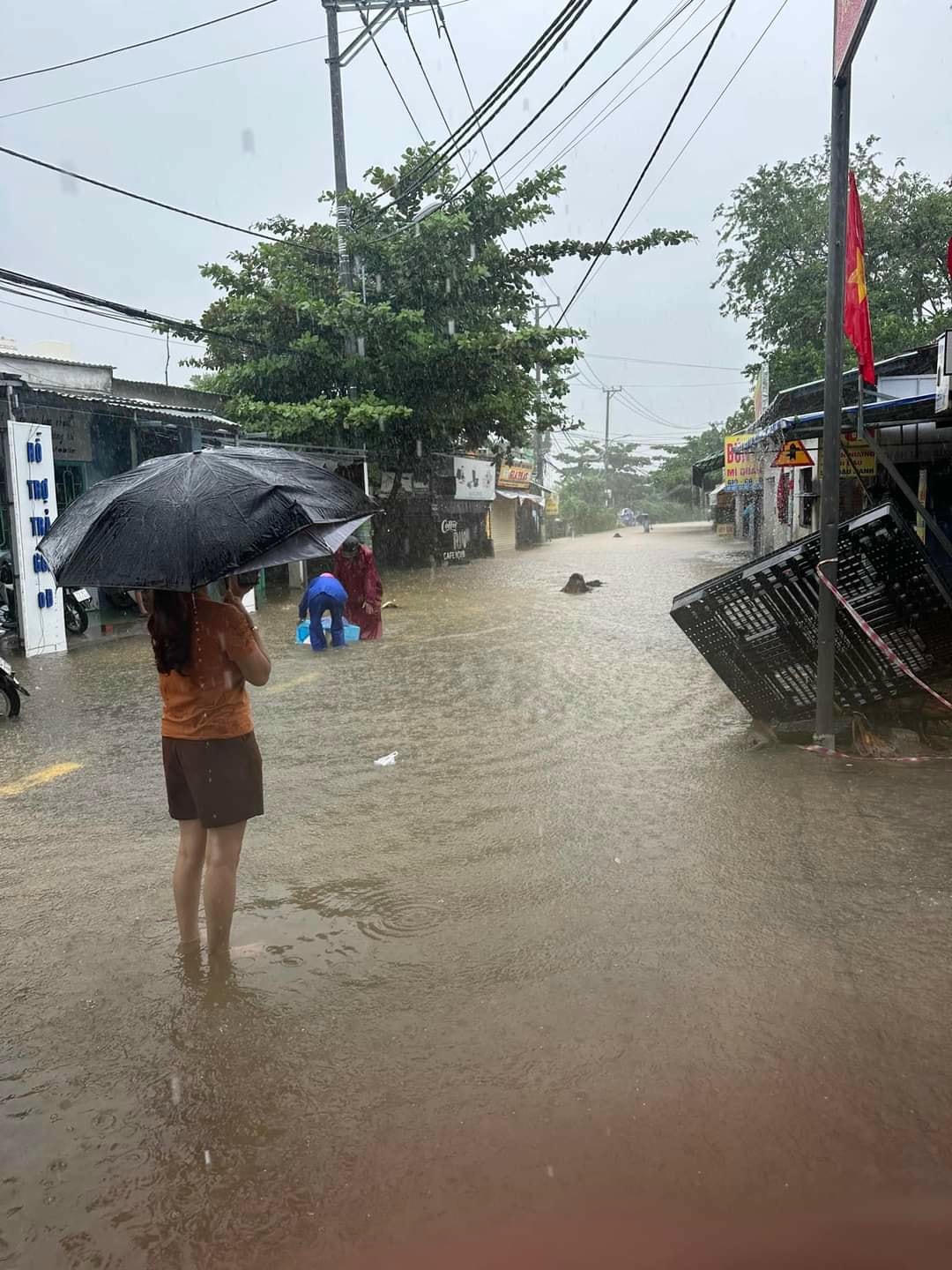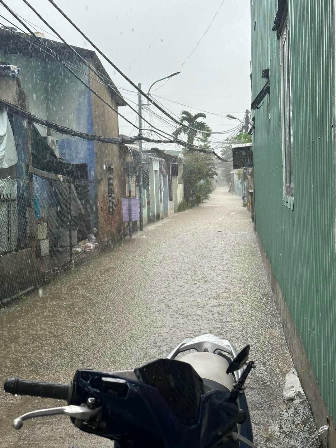 Ông Bùi Văn Lộc, Tổ trưởng dân phố 36 phường Hòa Khánh Nam cho biết, mưa lớn, nước dâng nhanh ở các lối đi trong khu dân cư từ 1,5 m đến 2 m. Nhà dân bị nước tràn vào, ngập trên 1 m. Khu dân cư gồm 2 tổ dân phố 36, 37 bị ngập từ khoảng 8h sáng.