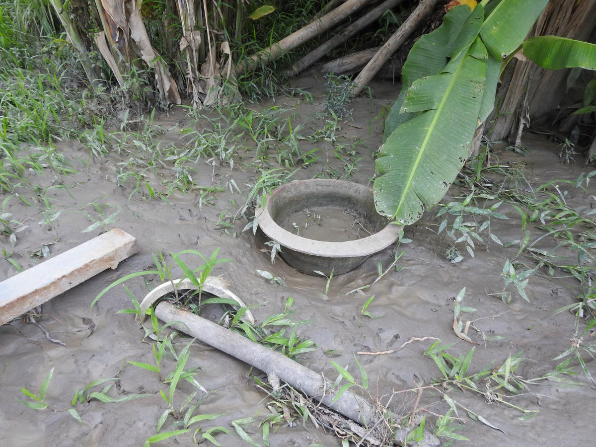 Nhà của ông Tiên nhờ có mấy bụi tre phía sau che chắn nên ít bị ảnh hưởng tuy nhiên căn nhà bên cạnh thì liên tục bị nước kèm theo đất, đá và bùn trên cao ào xuống trong các trận mưa từ đầu tháng 9 đến nay. Nước rút, cả sân và vườn đọng lại lớp bùn xám đen.