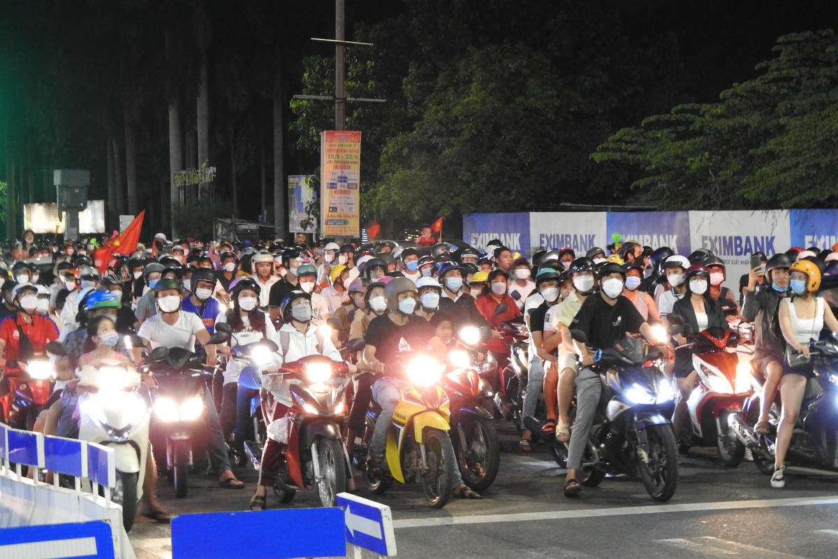 Chỉ chưa đầy 10 phút khi trận đấu giữa đội tuyển U23 Việt Nam và đội tuyển U23 Thái Lan kết thúc, các khu vực cửa ngõ ra vào TP Đà Nẵng đã ùn ùn dòng người, xe máy và ô tô đổ về trung tâm TP.