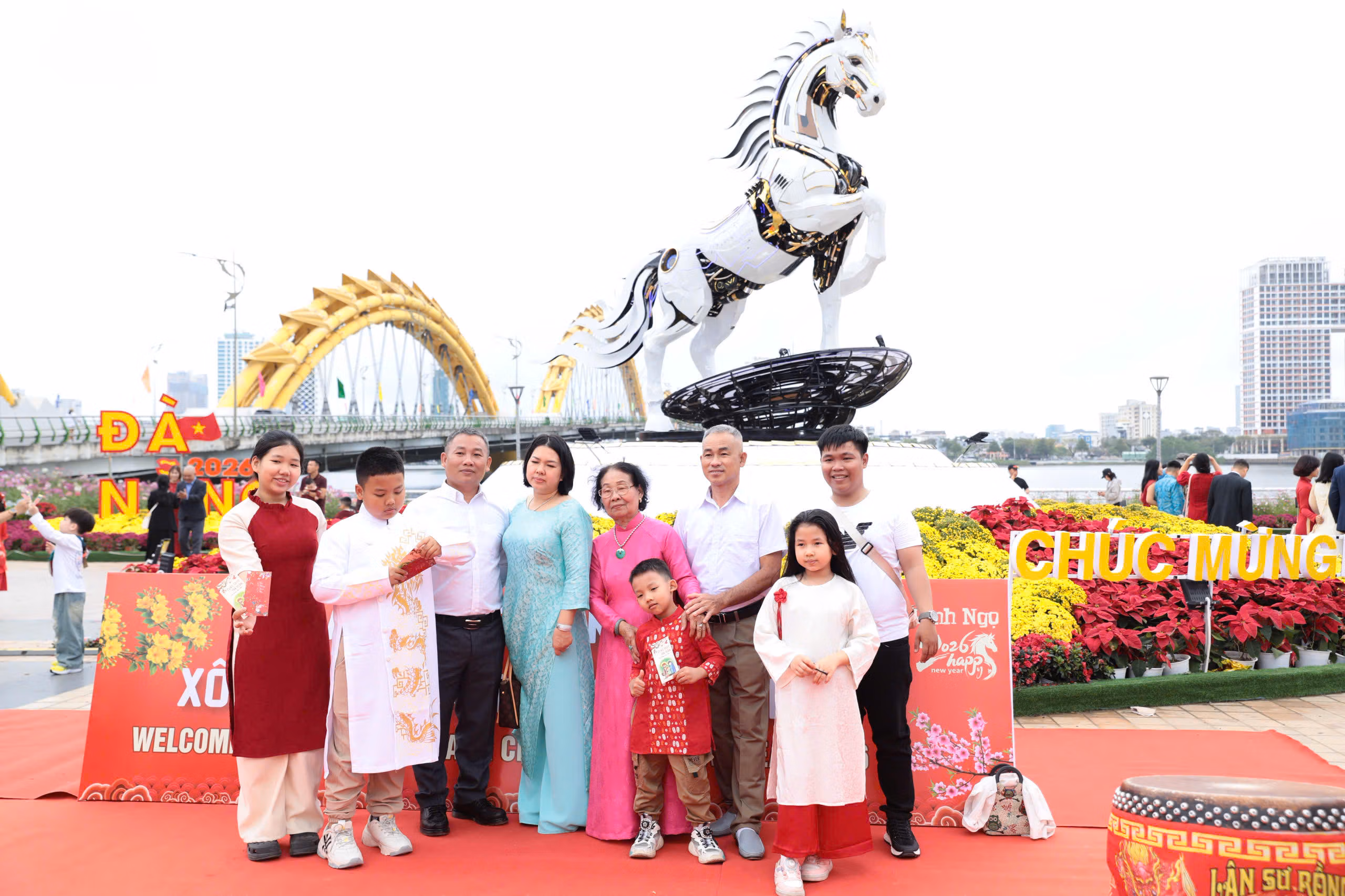 Trong đó, tại cầu Rồng, linh vật ngựa “Kim Mã 4.0” được thiết kế theo hình tượng ngựa công nghệ chuyển đổi số, vừa hài hòa về nghệ thuật tạo hình, vừa biểu trưng cho tinh thần tốc độ, đổi mới, định hướng phát triển đô thị thông minh của Đà Nẵng trong giai đoạn mới.