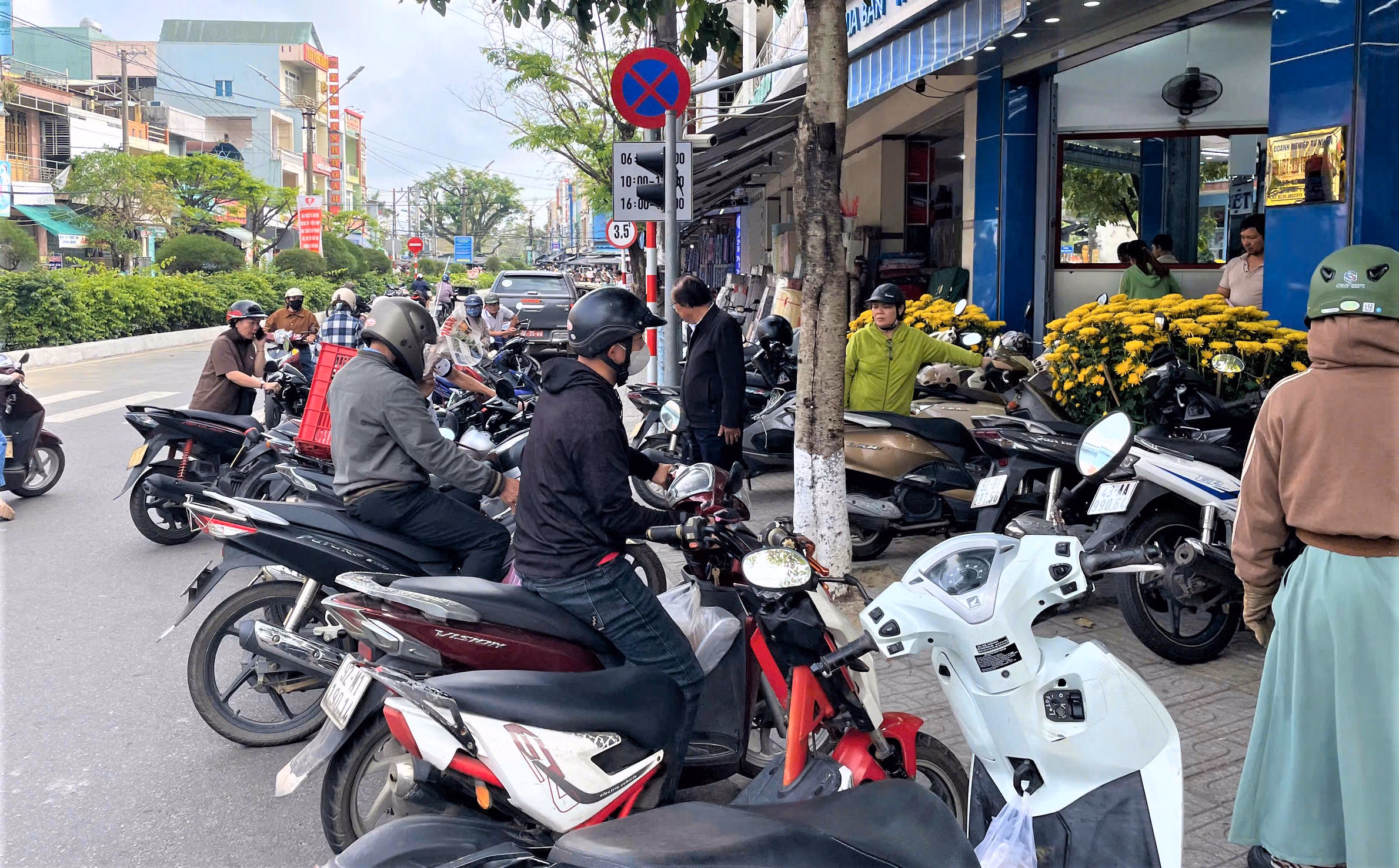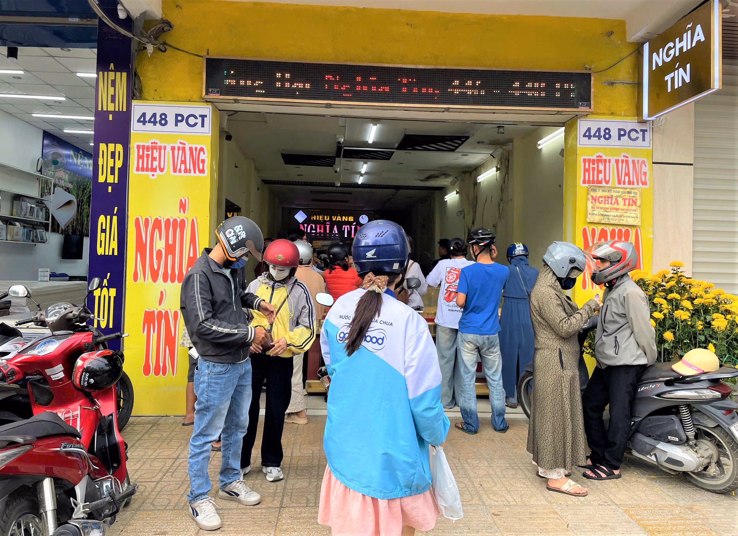 Theo ghi nhận của phóng viên trong ngày vía Thần Tài, ngay từ sáng sớm, nhiều người dân đã đến các tiệm vàng trên địa bàn các phường Tam Kỳ, Hương Trà, TP Đà Nẵng để xếp hàng mua, bán vàng, bạc. Không khí tại các tiệm vàng như: Kim Việt; Nghĩa Tín khá nhộn nhịp, lượng khách tăng mạnh so với ngày thường.