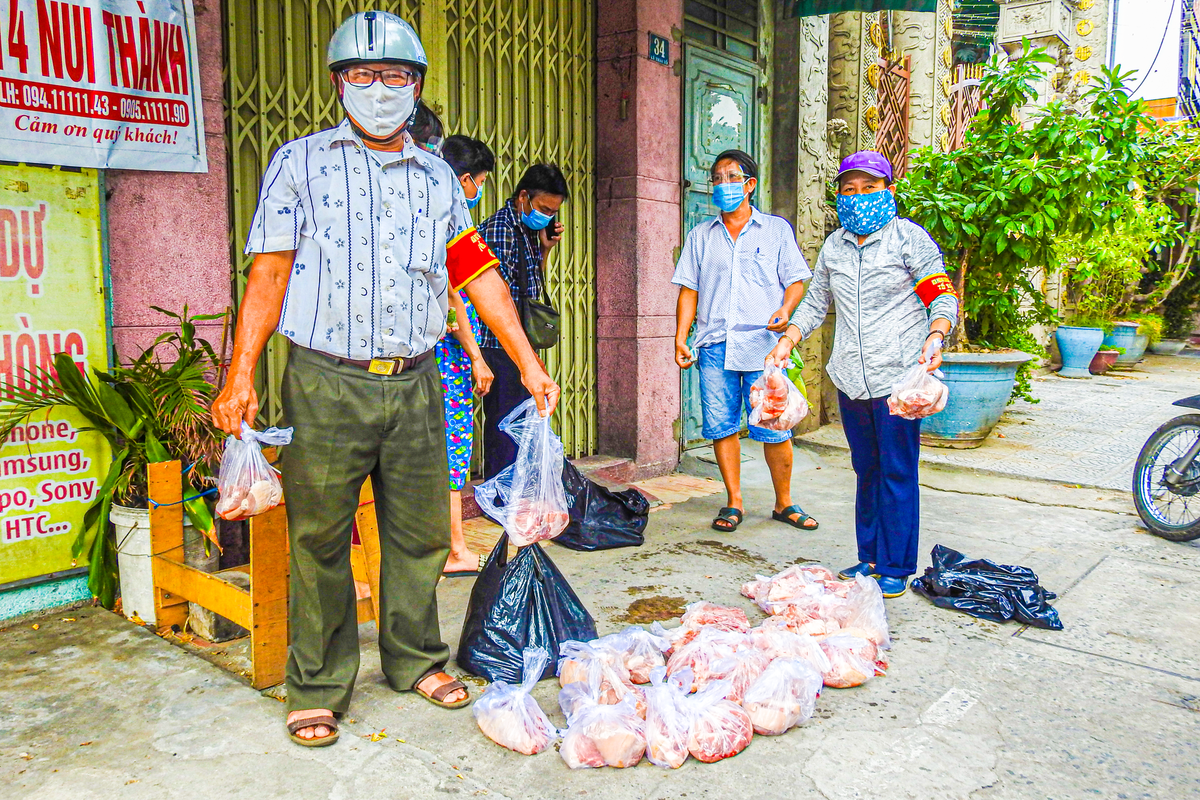 Nhiều tổ dân phố còn cung ứng miễn phí thịt heo tươi cho các hộ khó khăn. Trong ngày 23 và 24/8 người dân nhiều khu vực ở Đà Nẵng thật sự vui mừng khi được tổ dân phố, tổ Covid-19 cộng đồng phân phối thịt heo tươi, bánh mỳ và rau muống – thực phẩm quen thuộc trong đời sống, sinh hoạt hàng ngày.
