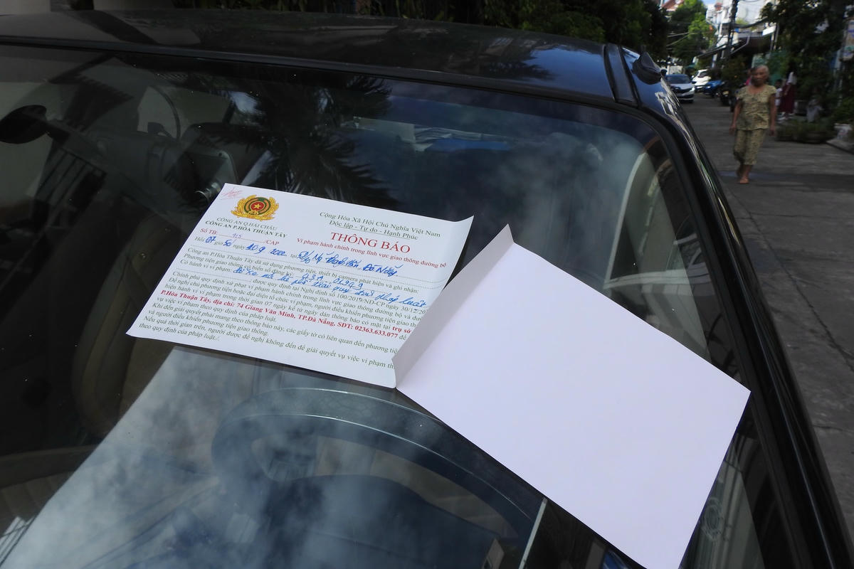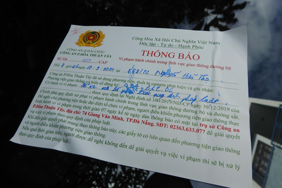 Người dân sống tại kiệt 58 - 60 khu dân cư 25 phường Hòa Thuận Tây, quận Hải Châu (Đà Nẵng) rất ngạc nhiên khi ô tô của họ đậu đỗ trước nhà trong kiệt ở đường Nguyễn Thành Hãn bị công an phường Hòa Thuận Tây dán thông báo vi phạm hành chính trong lĩnh vực giao thông đường bộ.