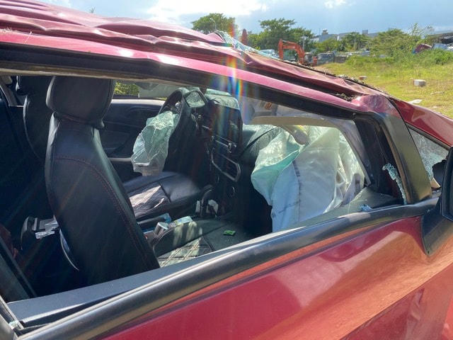 Khi tiếp đất, chiếc ô tô đã lộn nhiều vòng, biến dạng khiến 2 mẹ con (gồm người phụ nữ điều khiển xe và bé gái) bị thương tích khá nặng. Những người giải cứu nhận định, dù rơi xuống từ trên cao, lộn nhiều vòng khi tiếp đất nhưng người phụ nữ và con gái không nguy hiểm đến tính mạng do thắt dây an toàn và nhờ túi khí bung ra ngăn cản va đập.