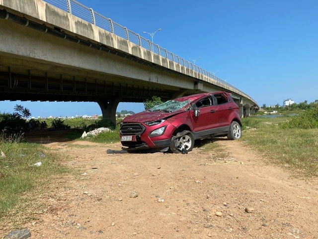 Theo thông tin ban đầu từ các nhân chứng: Trong lúc lưu thông trên đường Võ Chí Công, họ bất ngờ thấy chiếc ô tô 5 chỗ màu đỏ phía trước đâm gãy trụ cầu Khuê Đông, bắc qua sông Đò Toàn - sông Cái (nối phường Hòa Xuân quận Cẩm Lệ và phường Hòa Quý, quận Ngũ Hành Sơn), rơi tự do xuống bên dưới.