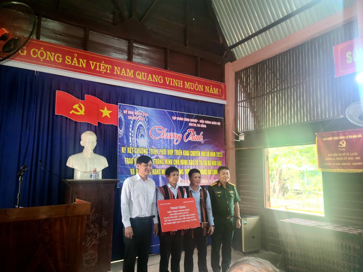Ngày 15/9, Sở TT&TT Đà Nẵng, Viettel Đà Nẵng và UBND xã Hòa Bắc tổ chức Lễ ký kết triển khai Chương trình chuyển đổi số năm 2023. Tại lễ ký kết, 50 hộ đồng bào Cơ Tu ở 2 thôn Tà Lang và Giàn Bí đã được tặng 50 điện thoại thông minh Samsung A03 (tổng trị giá 100 triệu đồng).