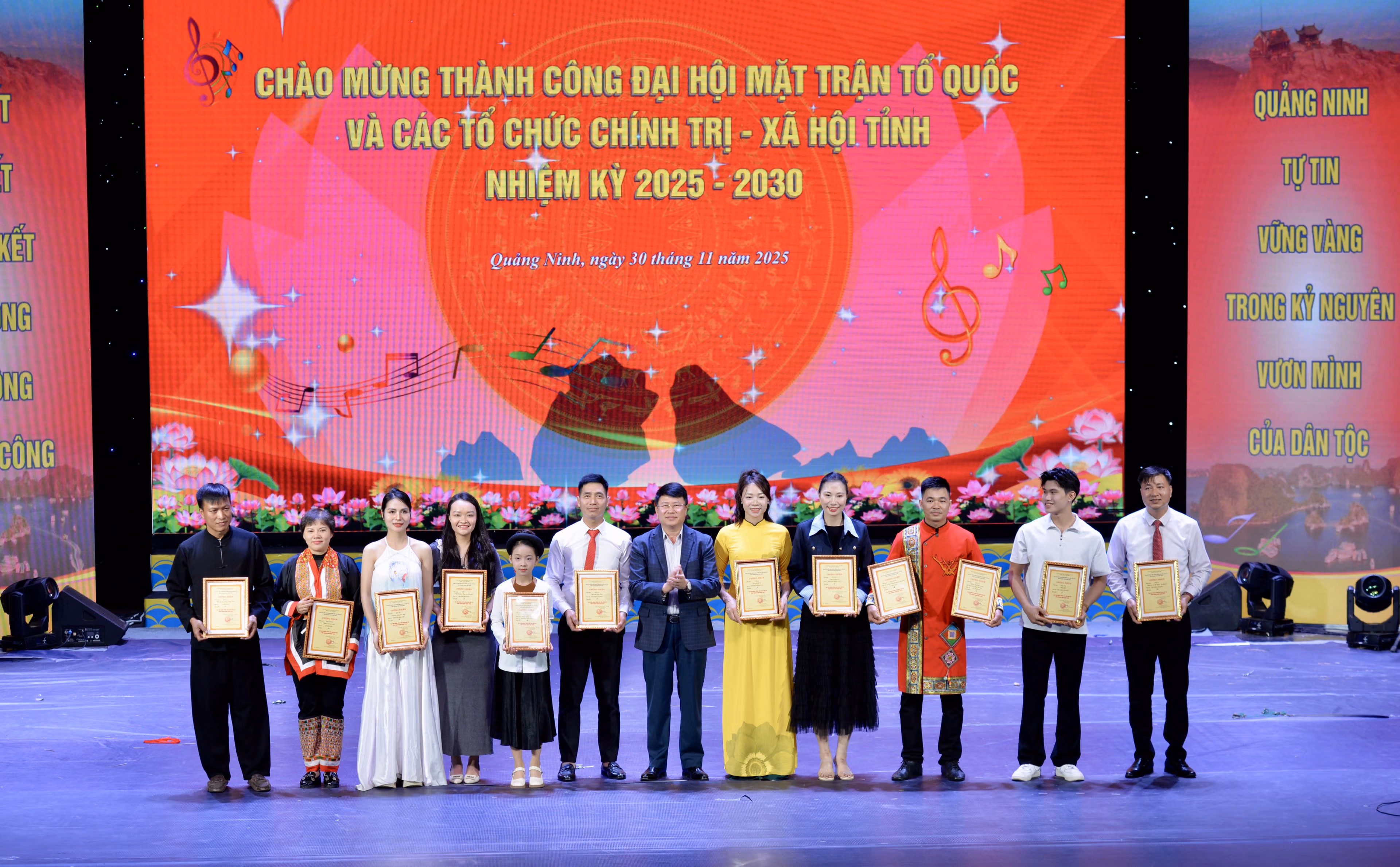 Ngày 30/11, Ủy ban MTTQ Việt Nam tỉnh Quảng Ninh chủ trì tổ chức Liên hoan Tiếng hát khu dân cư tỉnh Quảng Ninh năm 2025 với chủ đề “Khát vọng Quảng Ninh - theo Đảng quang vinh vững bước vào kỷ nguyên mới”.