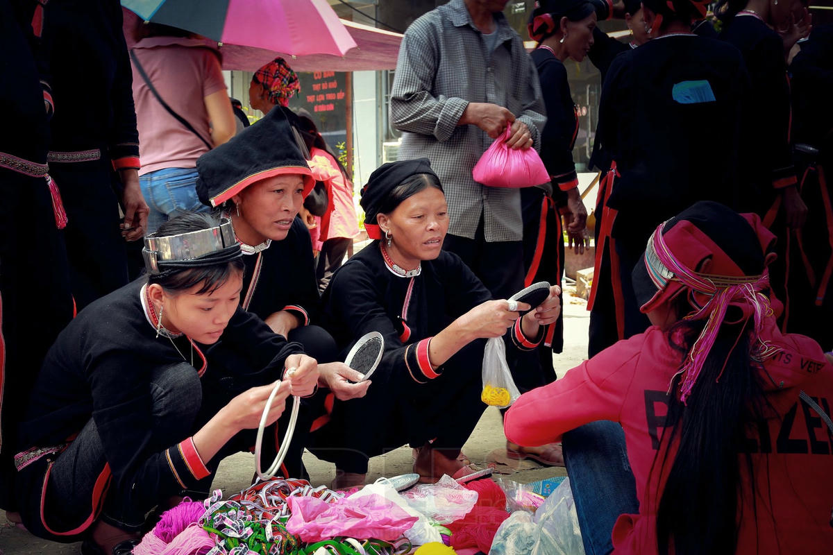 Đúng ngày chợ phiên, các chàng trai, cô gái tụ hội từng nhóm theo từng dân tộc, khoác trên mình những bộ xiêm y rực rỡ sắc màu, leng keng vòng bạc, xúc xắc… Họ cùng vui trong tiếng khèn, chân xoay theo điệu múa, rung rinh tà váy, xoắn xuýt người đi, kẻ ở.