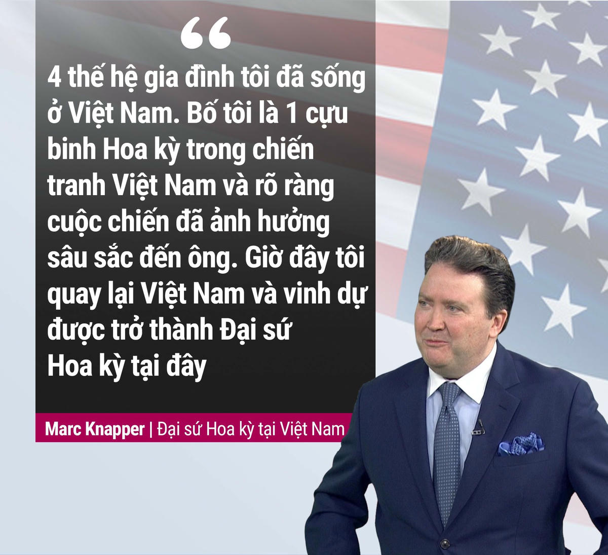Trong chuỗi phỏng vấn, Đại sứ Hoa kỳ Marc Knapper đã chia sẻ câu chuyện ít người biết về cha của ông – một cựu binh Mỹ trong chiến tranh Việt Nam. Theo Marc, yếu tố gia đình đã ảnh hưởng sâu sắc đến ông. Nhờ vậy, ông luôn cảm thấy vinh dự với vai trò và công việc hiện tại.