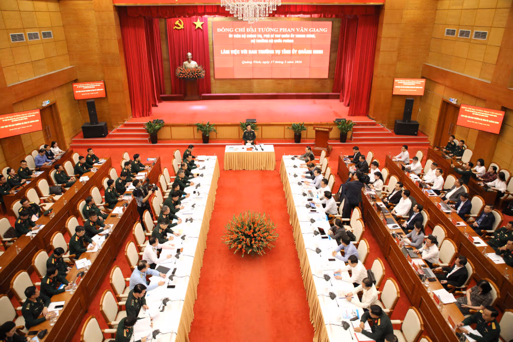 Ngày 17/3, Đại tướng Phan Văn Giang, Ủy viên Bộ Chính trị, Phó Bí thư Quân ủy Trung ương, Bộ trưởng Bộ Quốc phòng cùng Đoàn công tác của Bộ Quốc phòng đã làm việc với Ban Thường vụ Tỉnh ủy Quảng Ninh về kết quả công tác quốc phòng, quân sự địa phương, công tác biên phòng năm 2025 và phương hướng nhiệm vụ năm 2026.
