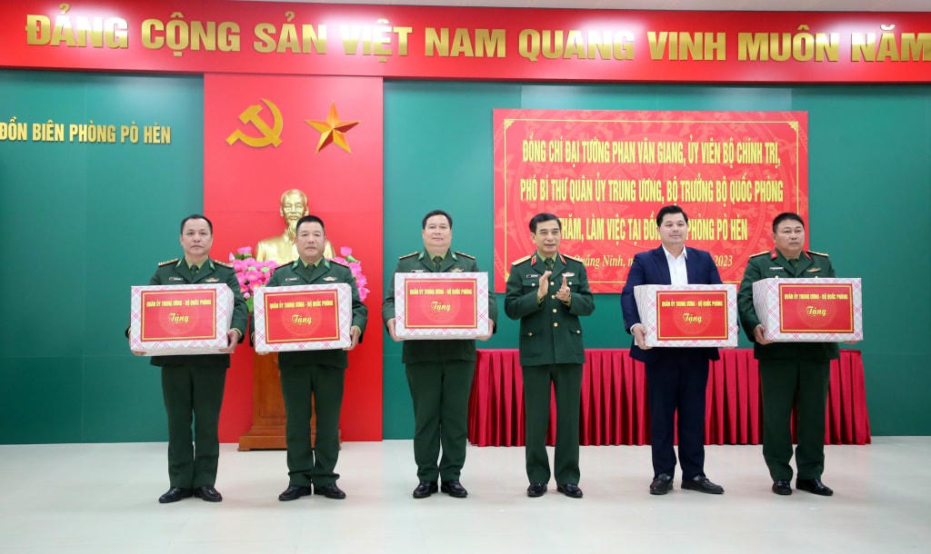 Bên cạnh việc trò chuyện, thăm hỏi các cán bộ, chiến sỹ nơi biên giới, Đại tướng Phan Văn Giang và Bí thư Tỉnh ủy Quảng Ninh Nguyễn Xuân Ký đã tặng quà cho Ban CHQS TP Móng Cái; các Đồn Biên phòng Pò Hèn, Bắc Sơn, Quảng Đức thuộc BĐBP tỉnh Quảng Ninh và UBND xã Hải Sơn.