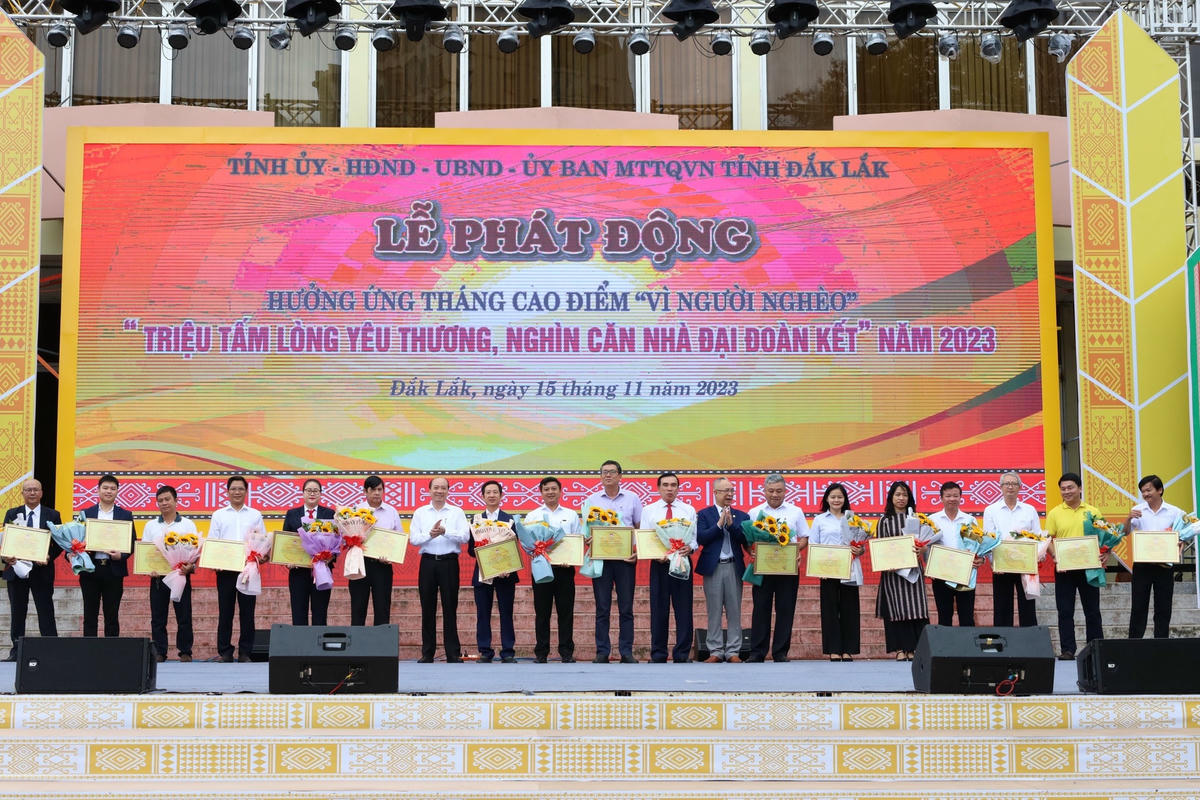 Sáng 15/11, Ủy ban MTTQ Việt Nam tỉnh Đắk Lắk phối hợp với UBND tỉnh tổ chức Lễ phát động hưởng ứng Tháng cao điểm “Vì người nghèo” năm 2023 với chủ đề “Triệu tấm lòng yêu thương, xây nghìn căn nhà Đại đoàn kết”.