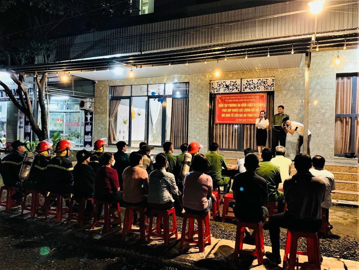 Sáng 11/9, Trung tá Phùng Việt Đức, Phó Trưởng phòng Cảnh sát PCCC và CNCH (PC07) cho biết, tối qua (ngày 10/9), các đơn vị thuộc 15 huyện, thị xã, thành phố trên địa bàn tỉnh Đắk Lắk đồng loạt tổ chức diễn tập phương án chữa cháy và cứu nạn cứu hộ tại các tổ liên gia an toàn PCCC.