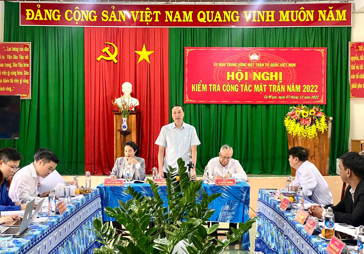 Báo cáo tại buổi làm việc, Chủ tịch Ủy ban MTTQ huyện Cư M'gar Nguyễn Văn Danh cho biết, trong năm 2022, hệ thống Mặt trận từ huyện đến cơ sở đã phối hợp với các tổ chức thành viên thực hiện tốt các chương trình hành động của Mặt trận, tiếp tục đa dạng hoá các hình thức tập hợp, vận động, động viên các tầng lớp nhân dân tham gia các cuộc vận động, phong trào thi đua yêu nước.