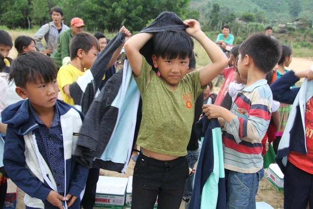 Nhận quà, các em reo lên vì vui sướng, lâu các em mới có đồ áo mới, mới được ăn những cái kẹo, gói bánh hay được uống sữa. Những thứ tưởng rất bình dị với bao đứa trẻ lại là những thứ rất “xa xỉ” với trẻ em nơi đây.