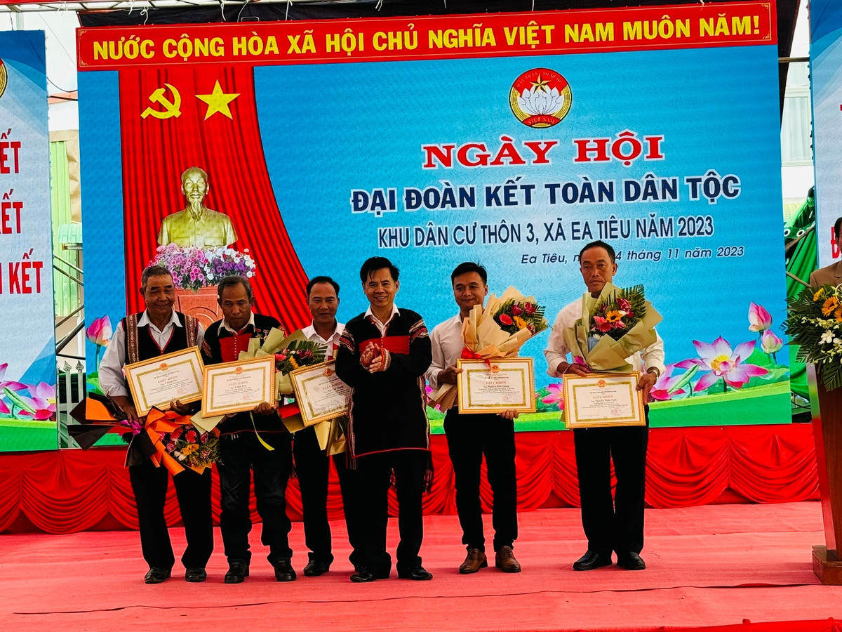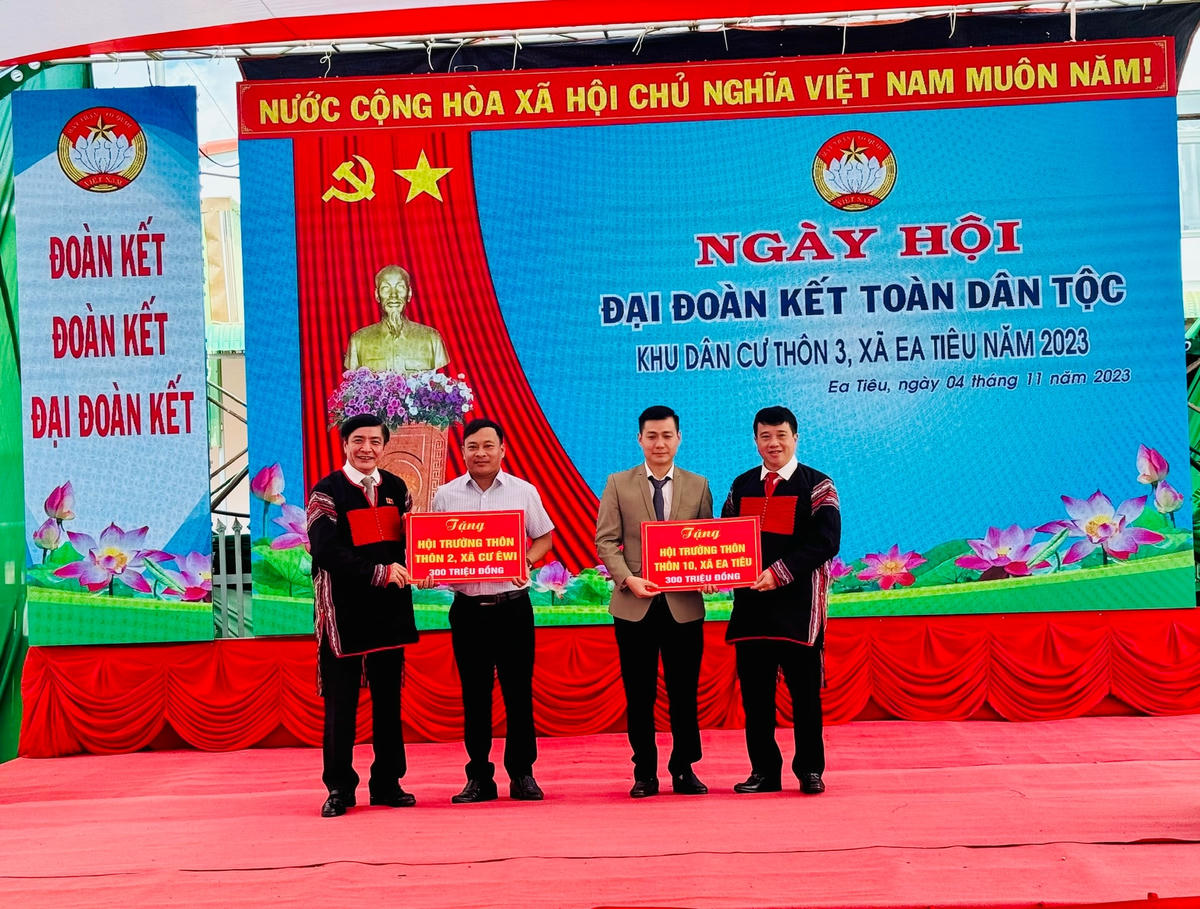 Về dự Ngày hội Đại đoàn kết xã Ea Tiêu, ông Y Thanh Hà Niê Kđăm và ông Bùi Văn Cường đã trao tặng xã Ea Tiêu 300 triệu đồng để xây dựng Hội trường thôn 10 xã Ea Tiêu, Hội trường thôn 2 xã Cư Êwi.