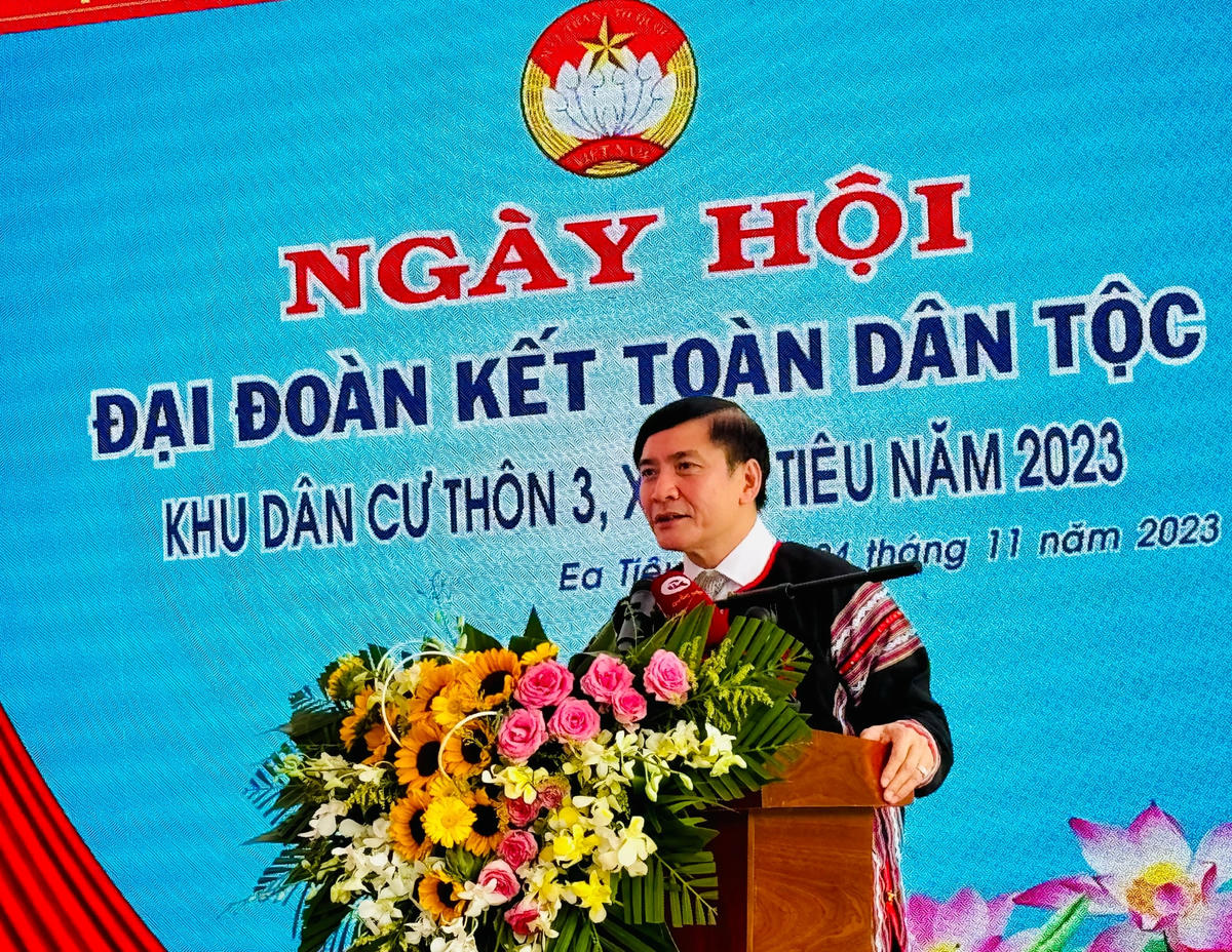 Phía tỉnh có lãnh đạo Tỉnh ủy, HĐND, Ủy ban MTTQ Việt Nam tỉnh; lãnh đạo Đảng, Chính quyền, Mặt trận các đoàn thể huyện Cư Kuin; lãnh đạo xã Ea Tiêu và đặc biệt sự có mặt hơn 400 người dân đại diện cho các tầng lớp nhân dân, các dân tộc trên địa bàn xã cùng về tham dự Ngày hội.