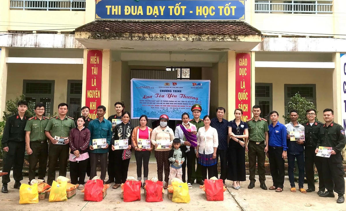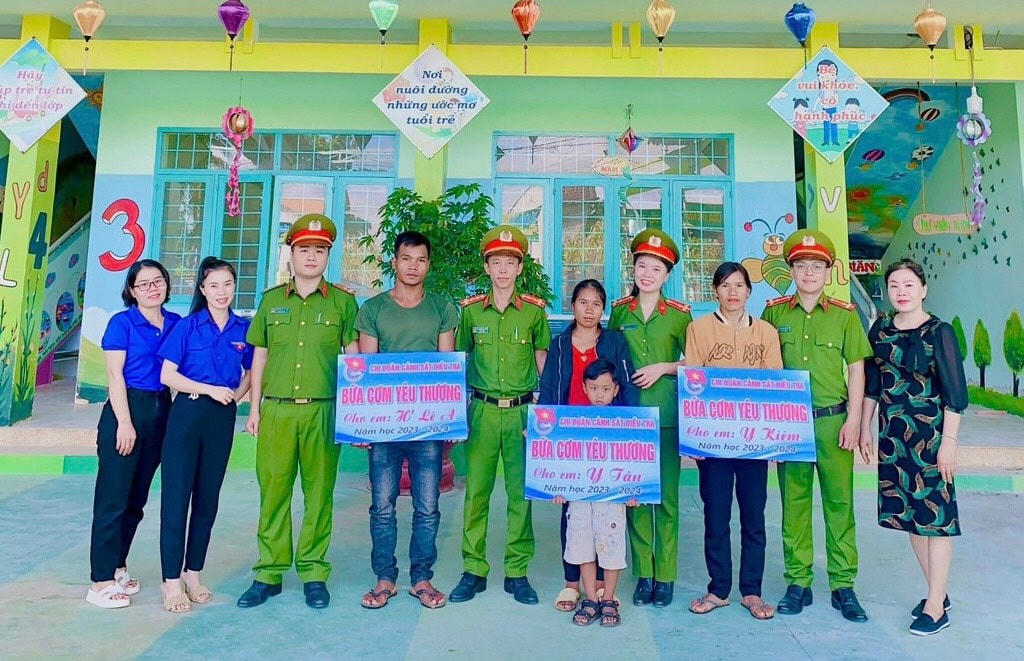 Đáng kể như: Trong ngày hội "Toàn dân bảo vệ an ninh Tổ quốc" năm 2023, Đoàn Thanh niên Công an huyện Krông Nô (tỉnh Đắk Lắk) đã phối hợp với các đơn vi liên quan trao tặng 2 nhà tình nghĩa cho hộ nghèo; tổ chức Chiến dịch “Hành quân xanh”, “Chương trình thiện nguyện hướng về cơ sở”; tặng hơn 20 phần quà trị giá hơn 7 triệu đồng cho người già neo đơn; tặng 3 suất “Bữa cơm yêu thương” trong suốt năm học 2023 – 2024, mỗi suất ăn 500.000đ/1 tháng cho 3 em học sinh trường Mầm non Anh Đào có hoàn cảnh đặc biệt khó khăn...