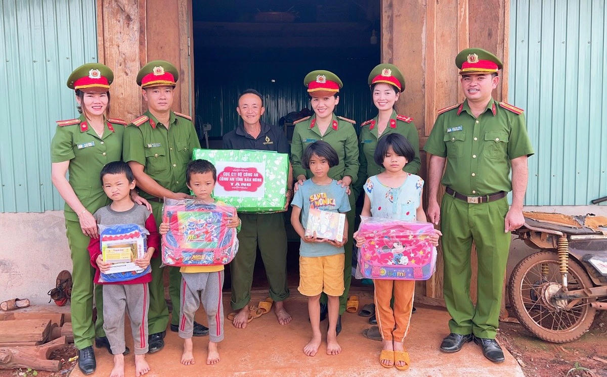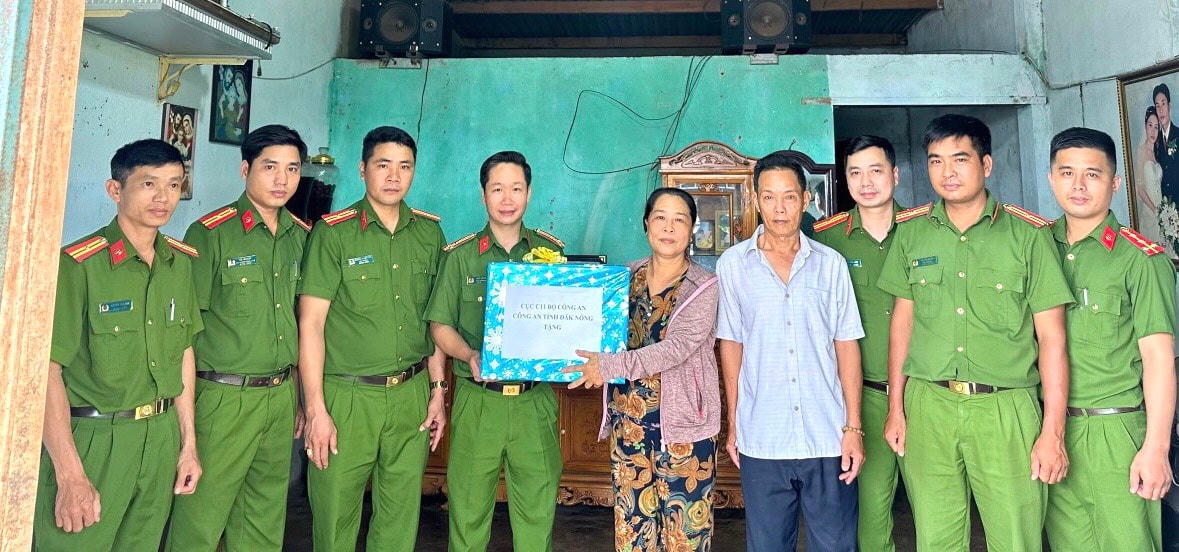 Đoàn công tác của Cục Cảnh sát quản lý tạm giữ, tạm giam và thi hành án hình sự tại cộng đồng, Bộ Công an do Đại tá Bùi Đắc Huyền, Phó Cục trưởng làm trưởng đoàn đã phối hợp với lực lượng Công an Đắk Nông đến thăm hỏi, tặng quà thân nhân Liệt sĩ Vũ Văn Nam, nguyên cán bộ Công an huyện Đắk Song hi sinh trong đấu tranh, phòng, chống tội phạm ma túy; thăm, tặng quà cho một số hộ đồng bào dân tộc thiểu số có hoàn cảnh đặc biệt khó khăn và lực lượng Công an xã biên giới Quảng Trực, huyện Tuy Đức; thăm, tặng quà các trường hợp đã chấp hành xong án phạt tù tái hòa nhập cộng đồng ở 2 huyện Krông Nô và Tuy Đức; hỗ trợ anh Phùng Thế Anh ở xã Đắk Nia, thành phố Gia Nghĩa số tiền 5 triệu đồng để mua sắm các vật dụng phục vụ hành nghề cơ khí....
