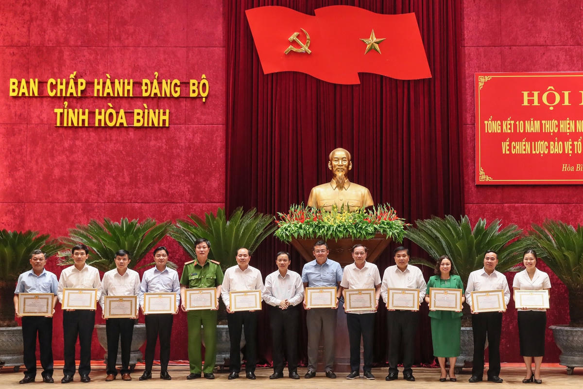 *Dịp này đã có 49 tập thể, cá nhân được tặng Bằng khen của Ban Thường vụ Tỉnh ủy Hòa Bình vì đã có thành tích xuất sắc trong 10 năm thực hiện Nghị quyết Trung ương 8 khóa XI về Chiến lược bảo vệ Tổ quốc trong tình hình mới giai đoạn 2013-2022.