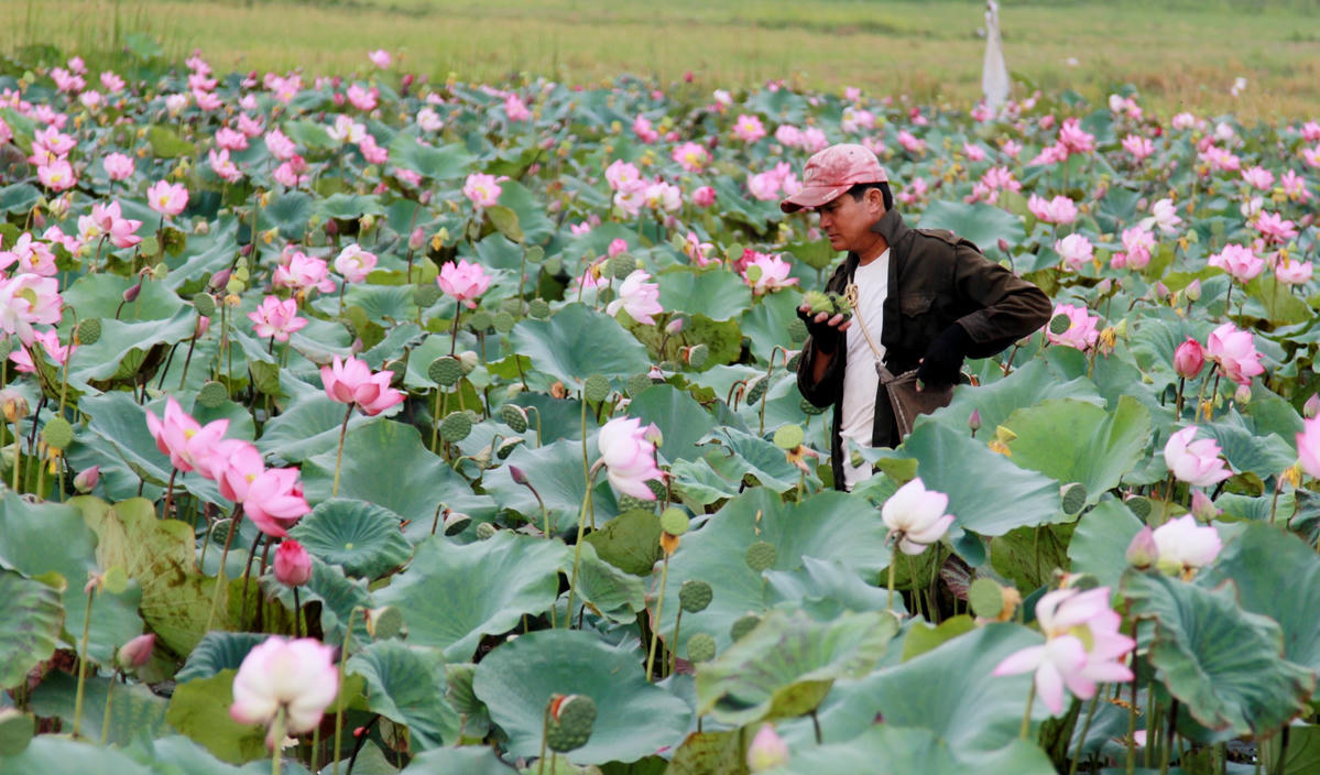Tuy nhiên, khi cây sen mọc lan rộng, đến mùa ra hoa, người dân bóc hạt sen đem bán và thấy có thu nhập khá.
