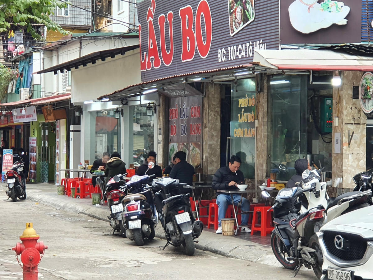 Kết thúc kỳ nghỉ Tết, các quán bún, phở bỗng trở nên nhộn nhịp hơn hẳn ngày thường.Ghi nhận của PV Đại Đoàn Kết Online, trên một số tuyến đường như Tô Hiệu, Nghĩa Tân... từng hàng dài xe máy xếp hàng để được ăn những bát bún, phở đầu tiên sau Tết.Một quán bún bò Huế nổi tiếng trên đường Nghĩa Tân (Cầu Giấy) đông nghẹt người được ghi nhận trưa 9/2. Chủ quán cho biết, từ khi mở cửa hàng đến nay buổi trưa nào quán cũng "full chỗ ngồi", thậm chí không có đủ chỗ để phục vụ do lượng khách quá đông.Chủ quán tận dụng luôn vỉa hè làm chỗ để xe cho khách.Chị Đinh Quỳnh Anh (Mỹ Đình 2, Nam Từ Liêm) chia sẻ: "Dù mang nhiều đồ ăn từ quê lên nhưng không thể nào ăn được vì đã quá ngấy nên tôi cùng bạn quyết định đổi món. Thế nhưng tìm được một quán bún, phở trong giờ trưa cũng không dễ gì bởi các cửa hàng này thường xuyên không có đủ chỗ ngồi, phải xếp hàng vào ăn". Nhiều quán bún, phở cũng nhân cơ hội này đẩy giá cao hơn ngày thường. Một quán bún riêu nổi tiếng trên đường Tô Hiệu bán đồng giá 60.000 đồng/bát. Một số quán khác cũng tăng từ 5.000 đến 10.000 đồng/bát dù đã hết Tết.Dù giá cả tăng cao nhưng người dân vẫn "cắn răng" chi tiền vì đã ngán ngẩm những đồ ăn ngày Tết.Vì lượng khách đông, xe máy được sắp xếp tràn ra cả lòng đường.Vỉa hè cũng được tận dụng tối đa làm chỗ để xe cho khách.Ngoài bán trực tiếp, lượng khách đặt hàng qua các ứng dụng công nghệ cũng tăng vọt sau Tết. Nhiều nơi cũng "cháy hàng" trước cả giờ cao điểm ăn trưa. Cũng theo ghi nhận, các nhà hàng lẩu, nướng cũng có số lượng khách tăng đột biến những ngày này.