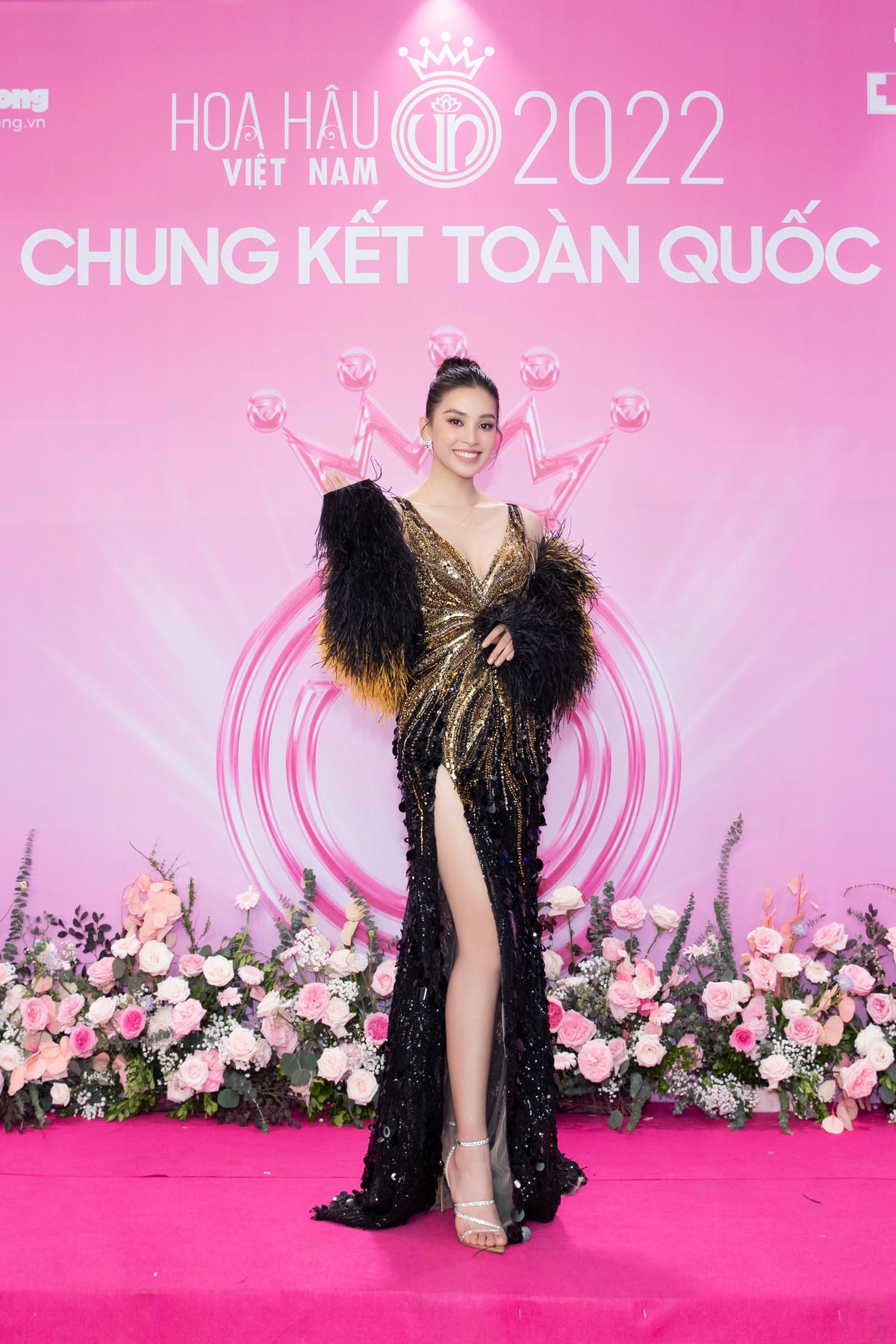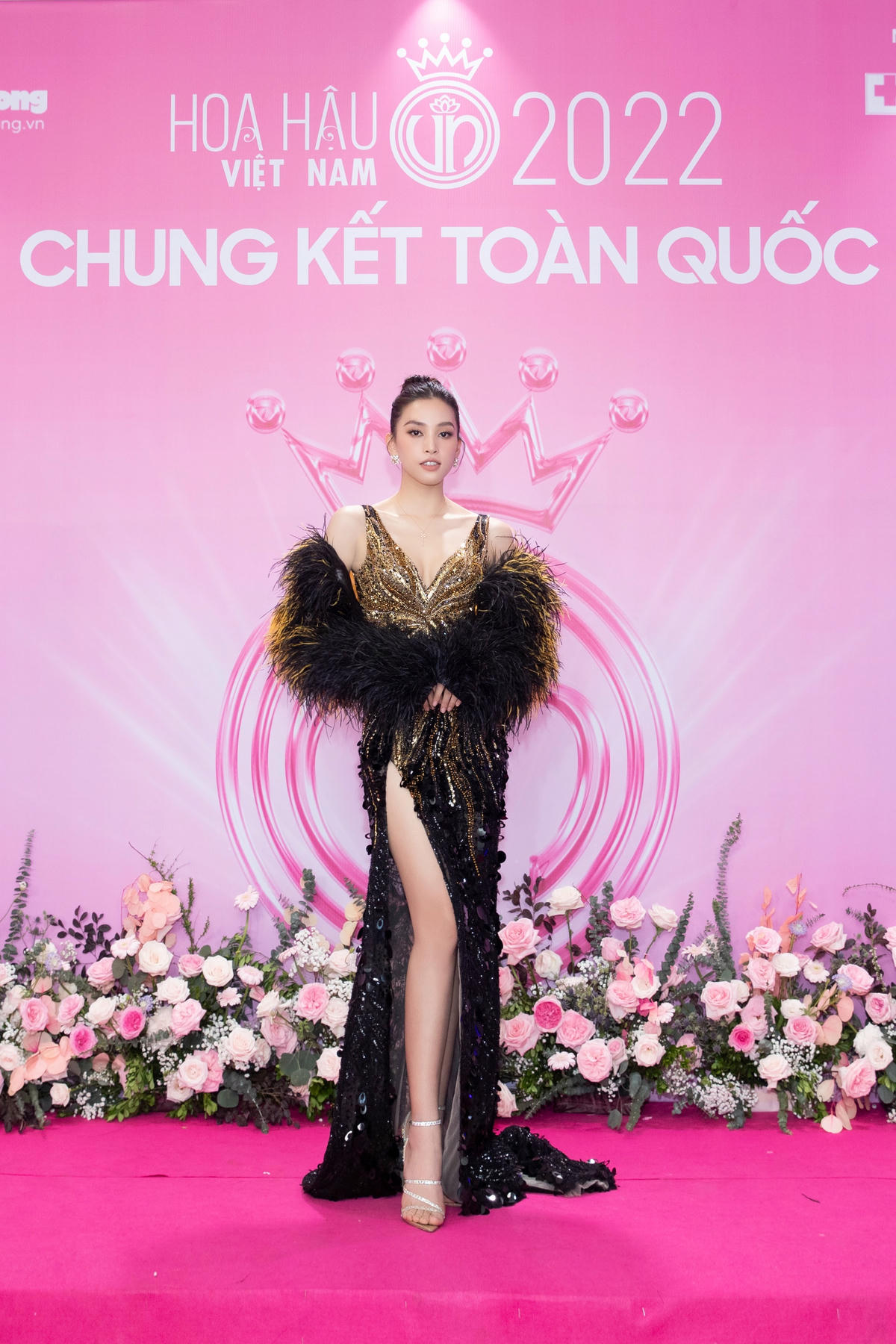 Trong khi dàn Hoa, Á Hậu chọn thiết kế với tone màu nhẹ nhàng mang hơi hướng thanh lịch thì Hoa hậu Tiểu Vy lại gây ấn tượng khi “chơi trội” với trang phục màu đen quyến rũ trên thảm đỏ chung kết Hoa hậu Việt Nam 2022.