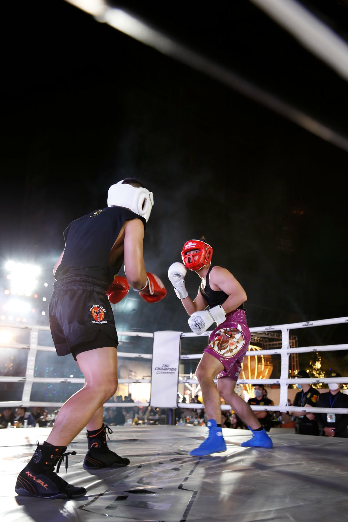 Cuối cùng là màn so găng của cặp võ sĩ chuyên nghiệp Võ Ngọc Hoan - Dương Thắng. Ngang tài ngang sức, cả 2 võ sĩ đã mang đến cho người xem 3 hiệp đấu vô cùng mãn nhãn, xứng tầm đẳng cấp.