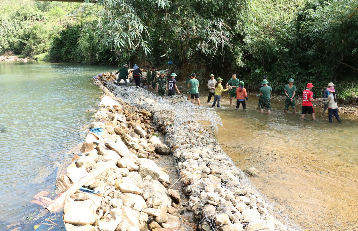 Trước đó, do mưa lũ nên đập ngăn nước đã bị trôi nhiều tháng nay, diện tích ruộng lúa khô hạn không có nước cho bà con sản xuất. Trước thực tế trên, cán bộ, chiến sĩ Bộ CHQS tỉnh Thừa Thiên Huế phối hợp với chính quyền địa phương cùng bà con nhân dân ra quân đắp đập, nạo vét kênh mương nội đồng. Với hàng chục khối đất đá cùng rọ sắt, kết thành con đập kết cấu vững chắc; nạo vét bùn đất, rác thải, giúp kênh mương thông thoáng. Sau quá trình ra quân, hệ thống đập và kênh mương đã được khơi thông dẫn nước vào cánh đồng phục vụ cho bà con sản xuất vụ lúa đông xuân.