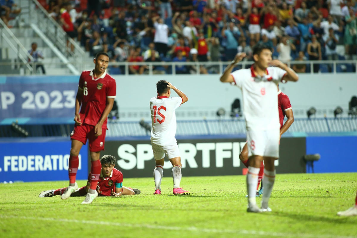 U23 Việt Nam cũng có những cơ hội, đáng chú ý là quả phạt đền không thành công của Quốc Việt ở phút 32. Indonesia cũng có những cơ hội để ghi bàn, đáng chú ý là cú sút phạt tìm đúng xà ngang của Sananta. Hai đội hòa 0-0 sau thời gian thi đấu chính thức cũng như 30 phút hiệp phụ.