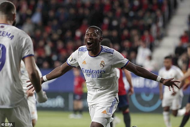Ép sân liên tục, Real Madrid đã có bàn mở tỷ số 1-0 trước Osasuna. Phút 12, Benzema chuyền vào thuận lợi để trung vệ David Alaba ra chân cận thành tung lưới đối thủ.