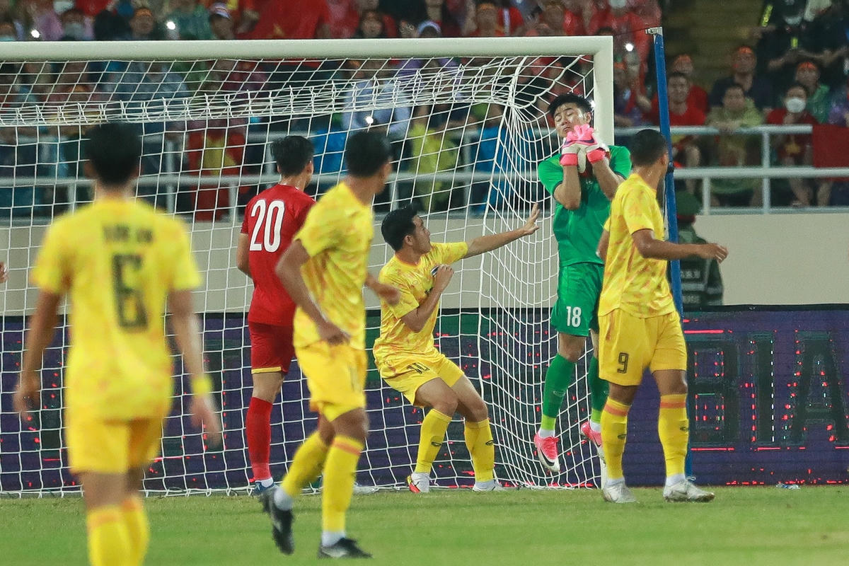 Những pha tấn công liên tục của U23 Thái Lan đã nhiều lần gây sóng gió cho khung thành Văn Toản và khiến không ít lần NHM Việt Nam phải thót tim.
