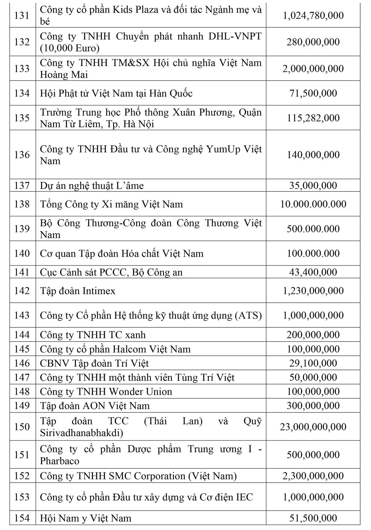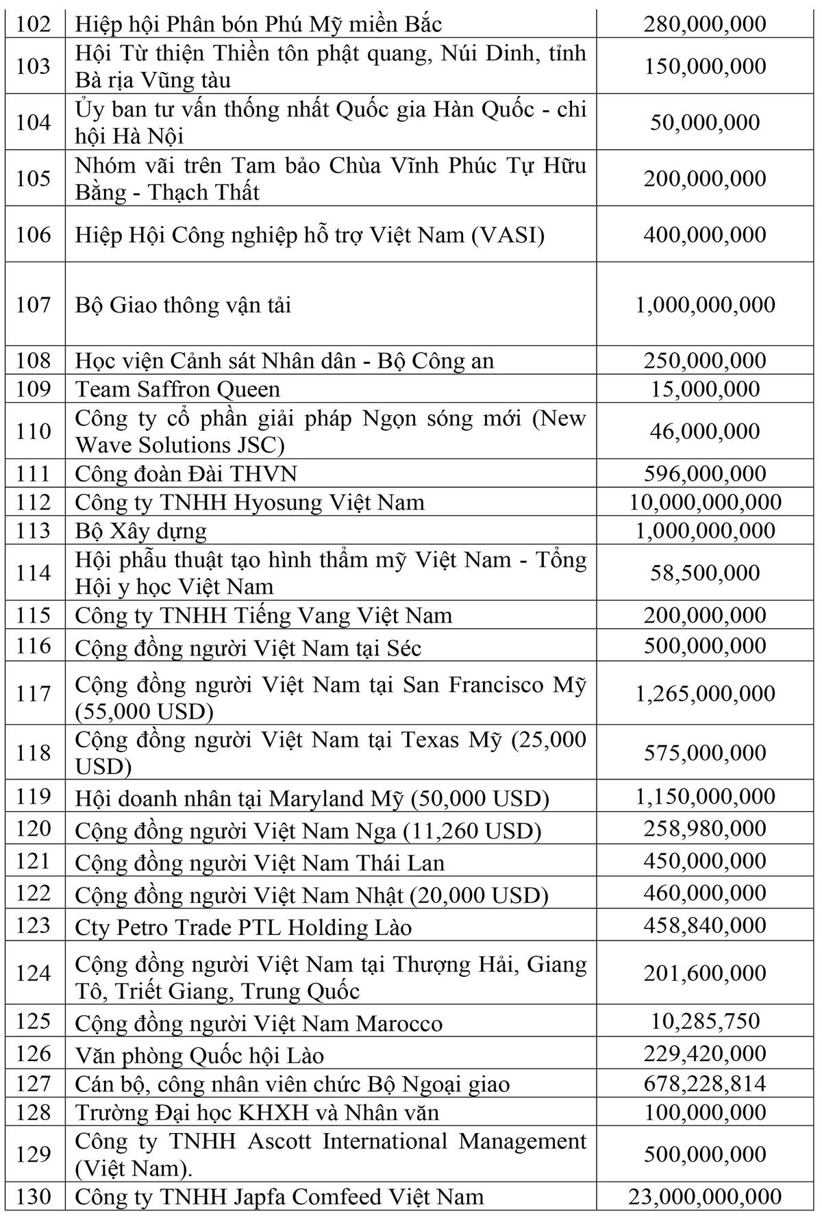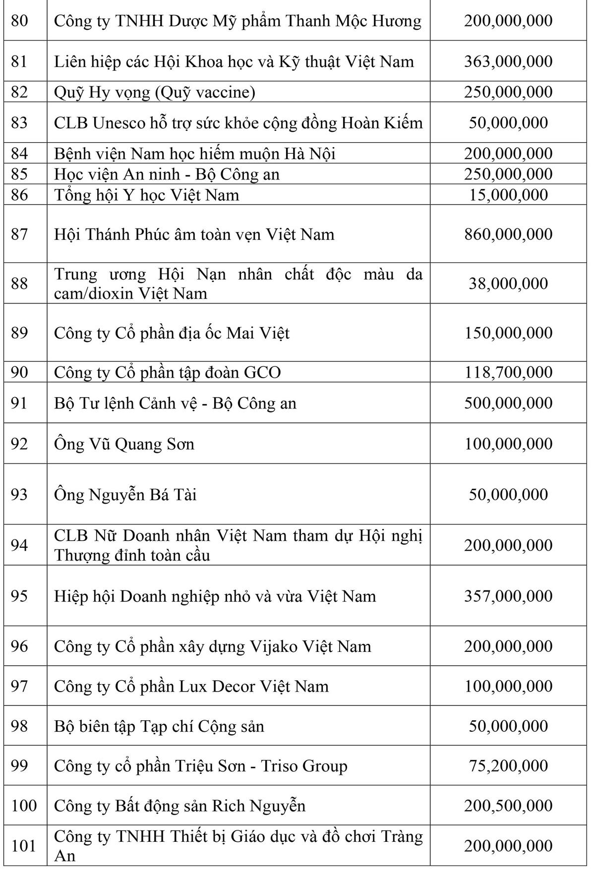 Danh sách các cơ quan, đơn vị, doanh nghiệp, tổ chức và cá nhân ủng hộ công tác phòng, chống dịch thông qua UBTƯ MTTQ Việt Nam