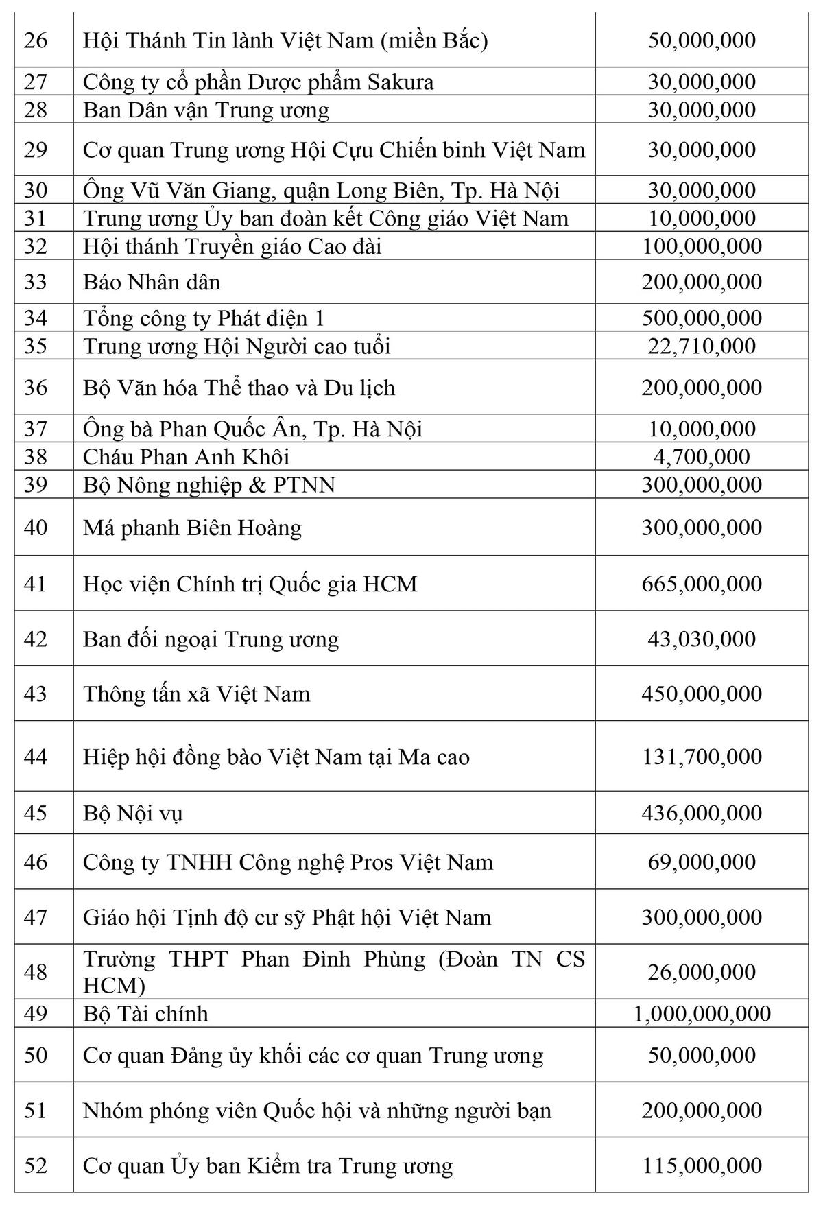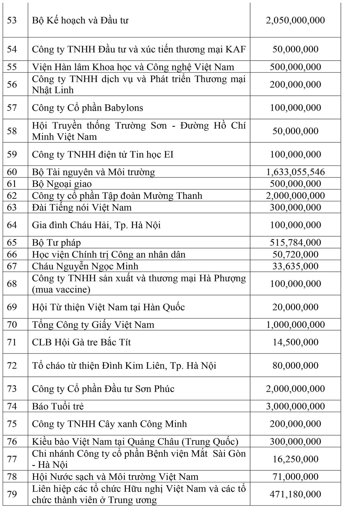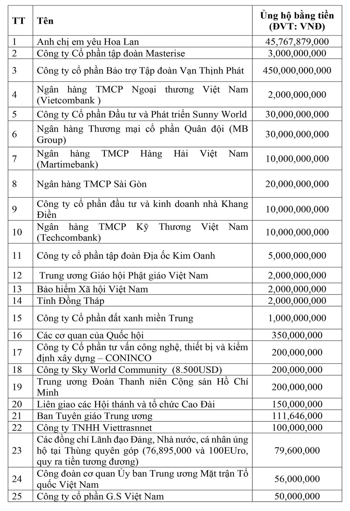 Danh sách các cơ quan, đơn vị, doanh nghiệp, tổ chức và cá nhân ủng hộ công tác phòng, chống dịch thông qua UBTƯ MTTQ Việt Nam