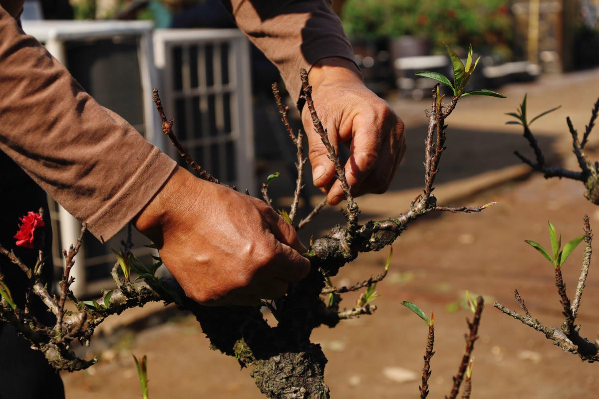 Theo ông Lê Hàm, đào Thất Thốn là loại cây cảnh “khó tính” nên người trồng đào phải cẩn thận và tỉ mẩn từ công đoạn nhỏ nhất như tuốt lá, chiết, ghép, tỉa cành, khoanh gốc, ủ lạnh…