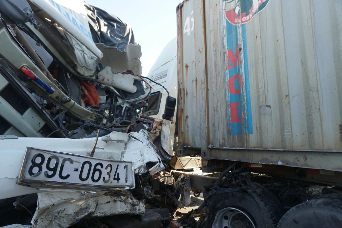 Do va chạm quá mạnh nên phần đầu xe tải chở hàng bị biến dạng hoàn toàn, tài xế xe tải Trần Quốc Toản cùng phụ xe là anh Trịnh Huy Tùng (38 tuổi, trú tại H.Yên Mỹ, Hưng Yên) bị thương rất nặng, mắc kẹt trong ca bin.