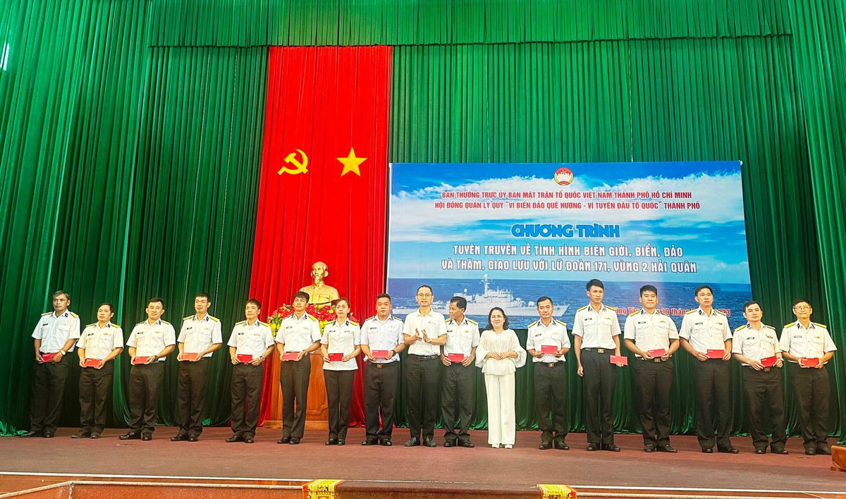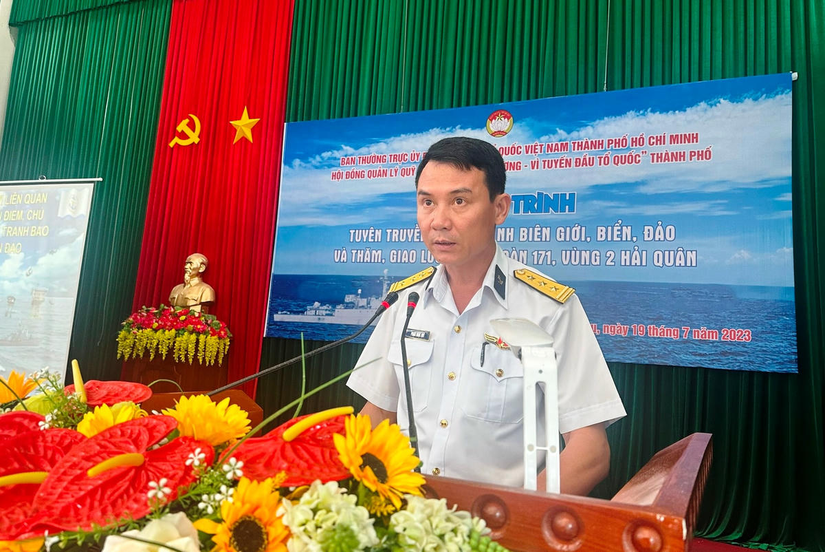 Tại hội nghị, Lữ đoàn 171 đã thông tin đến hơn 300 đại biểu là đại diện lãnh đạo, cán bộ, học viên lớp bồi dưỡng kỹ năng, nghiệp vụ công tác Mặt trận năm 2023 trên địa bàn TP Hồ Chí Minh một số nội dung cơ bản về vị trí, vai trò, tầm quan trọng của biển, đảo Việt Nam; chứng cứ lịch sử, pháp lý về chủ quyền đối với quần đảo Hoàng Sa và Trường Sa của Việt Nam; vai trò nòng cốt của lực lượng Hải quân trong nhiệm vụ bảo vệ chủ quyền biển, đảo và thềm lục địa thiêng liêng của Tổ quốc giai đoạn hiện nay.