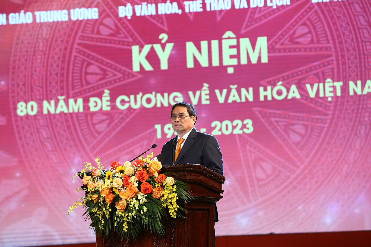 Cũng theo Thủ tướng Phạm Minh Chính, 80 năm qua, đặc biệt là gần 40 năm đổi mới, chúng ta đã có quyền tự hào về phát triển văn hóa dân tộc và những đóng góp to lớn của lĩnh vực văn hóa, văn nghệ vào công cuộc cứu quốc và kiến quốc. Nhận thức về văn hóa ngày càng toàn diện và sâu sắc hơn. Văn hóa Việt Nam có sự thống nhất trong đa dạng, là sự hòa quyện, kết tinh giữa bản sắc văn hóa các dân tộc anh em; ngày càng phát triển mạnh mẽ, gắn với mọi mặt của đời sống, hướng tới phục vụ nhu cầu chính đáng của Nhân dân; được bảo tồn, phát huy; từng bước trở thành động lực, nguồn lực quan trọng thúc đẩy phát triển kinh tế - xã hội. “Truyền thống văn hóa như suối nguồn nuôi dưỡng tạo nên nét đẹp, cốt cách của con người Việt Nam, là tinh thần đại đoàn kết toàn dân tộc; sự hội tụ của lòng yêu nước, nhân ái, sẻ chia; tính cầu thị, khiêm tốn, lắng nghe, chịu thương, chịu khó và khả năng sáng tạo, ứng phó, vượt qua mọi khó khăn, thách thức trong bất cứ hoàn cảnh nào” Thủ tướng nói.