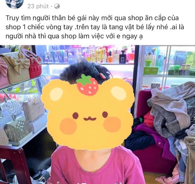 Theo Tiền Phong, trước đó, tối 29/11 trên mạng xã hội lan truyền một bài đăng với nội dung: “Truy tìm người thân bé gái này mới qua shop ăn cắp một chiếc vòng tay. Trên tay là tang vật bé lấy nhé. Ai là người nhà thì qua shop làm việc ngay với em”.