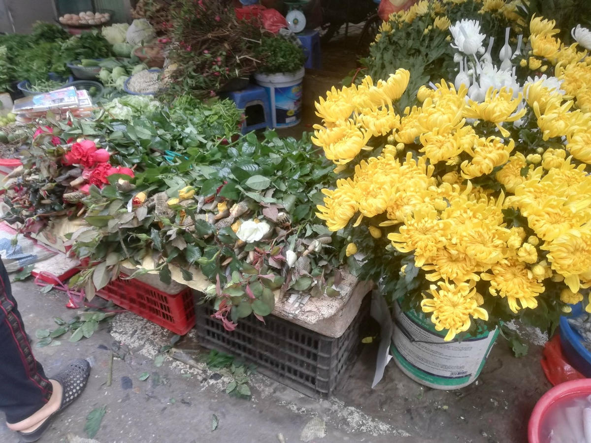 Tại chợ Tân Mai, quận Hoàng Mai, Hà Nội, người dân đi sắm lễ mũ áo ông Công ông Táo, vàng hương theo phong tục tập quán Việt Nam. Ngày 23 tháng Chạp nhằm vào thứ 7 tuần này nên các gia đình có thể cúng lễ từ ngày 21, 22 đến sáng ngày 23 tháng Chạp.Hàng hóa đa dạng, phong phú, giá cả phải chăng.Những chậu cá chép đỏ au được người dân chọn lựa, mua sắm để cúng lễ với giá cả cũng phải chăng, chỉ 10.000 đồng/3 con.Những đĩa xôi giá chỉ tầm 20-25.000 đồng/đĩa đẹp mắt cũng được chuẩn bị chu đáo, bánh chưng nóng hổi cũng được sắp sẵn, giá chỉ từ 30-35.000 đồng/chiếc.Chùm cau đẹp mắt phục vụ nhu cầu các bà nội trợ.Các loại hoa quả, bưởi, phật thủ, quýt, hồng xiêm... được người dân lựa chọn với giá cả không hề tăng giá so với những ngày trước.Đồ trang trí nhà cửa, cây đào cây quất cũng xuất hiện rất nhiều ở chợ dân sinh.Các loại hoa cúc, cành đào nhỏ, hoa hồng được bày bán rất sôi động.Những chú gà mào đỏ au đã sẵn sàng để người dân mua về làm lễ cúng.Giá cả thịt lợn ổn định, không tăng giá, chỉ tầm 11-12.000đ/lạng thịt ba chỉ...Một xe mùi già để người dân mua về tắm, tẩy trần ngày Tết theo phong tục tập quán.