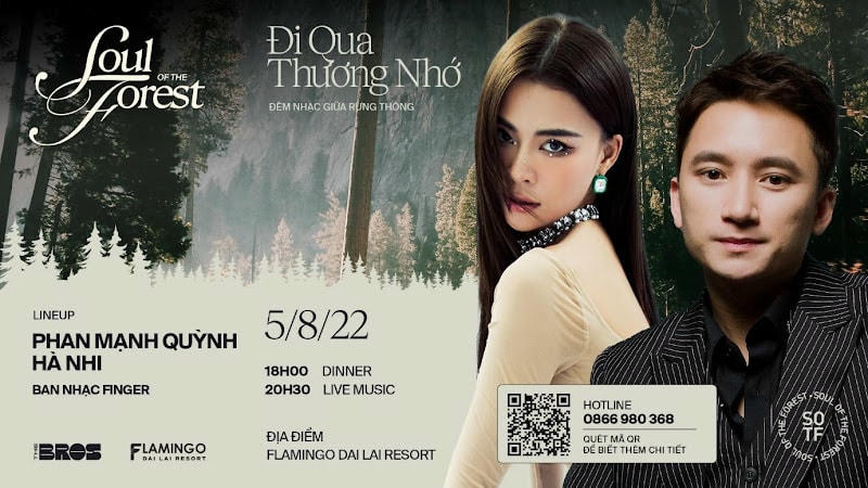 Đêm diễn Soul of the Forest 5 đang đến gần. Quý vị nhanh tay gọi tới Hotline: 0866980368 để có được một chỗ ngồi xinh xắn dưới tán thông xanh rì của Flamingo Đại Lải và cùng nghe Phan Mạnh Quỳnh và Hà Nhi kể về hành trình đi qua thương nhớ của họ nhé!