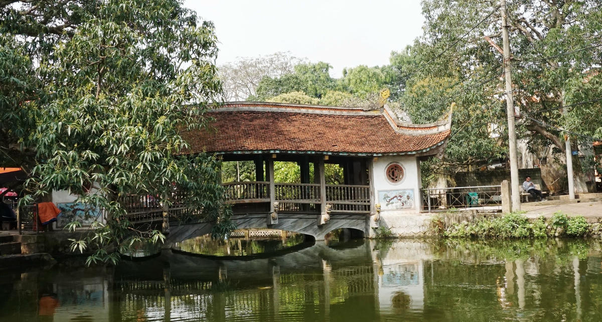 Tiêu biểu, đình có một cây cầu bắc qua ao có kiến trúc đặc trưng cho làng quê Bắc bộ Việt Nam. Không có tư liệu chính thức ghi rõ năm xây dựng cây cầu nhưng theo các cụ cao niên trong làng thì có lẽ cầu được xây dựng vào thời nhà Lê, thế kỷ XVI. Năm 1940, do ảnh hưởng của chiến tranh nên cầu bị hư hại nặng, đến năm 2000 thì được tu sửa lại theo phong cách cũ.
