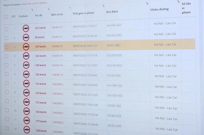 Cũng theo Cục Cảnh sát giao thông, từ năm 2021 đến nay, đơn vị đã xử phạt 71 trường hợp sử dụng biển kiểm soát giả, che hoặc sửa biển số trên tuyến cao tốc Nội Bài - Lào Cai.