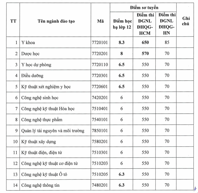 Cụ thể, điểm chuẩn ngành Dược là 24 điểm, các ngành Điều dưỡng và Kỹ thuật xét nghiệm y học là 19,5 điểm. Tất cả các ngành còn lại mức điểm chuẩn 18 điểm. Mức điểm chuẩn này đã bao gồm điểm ưu tiên.