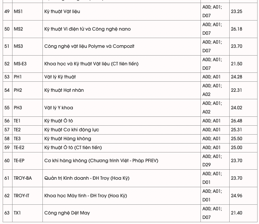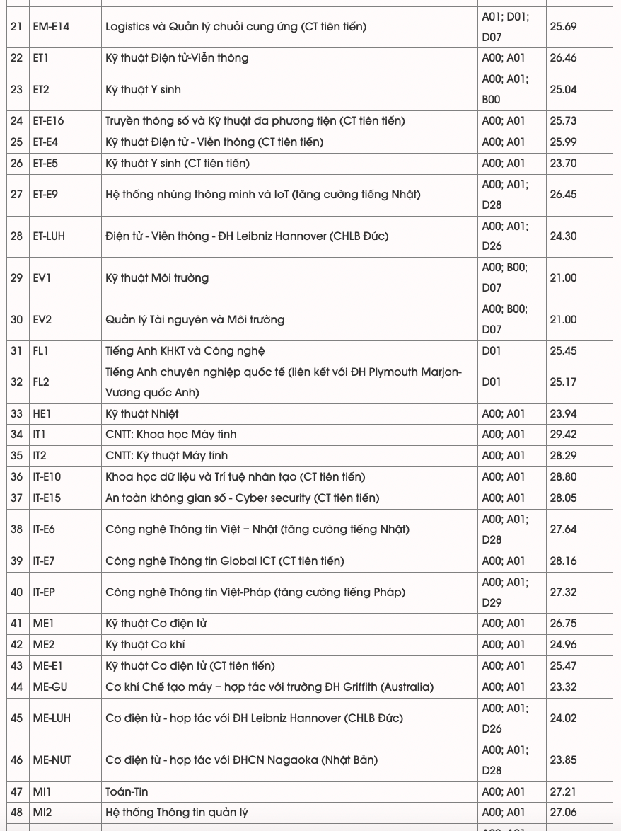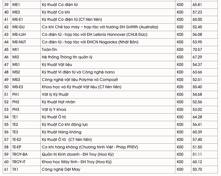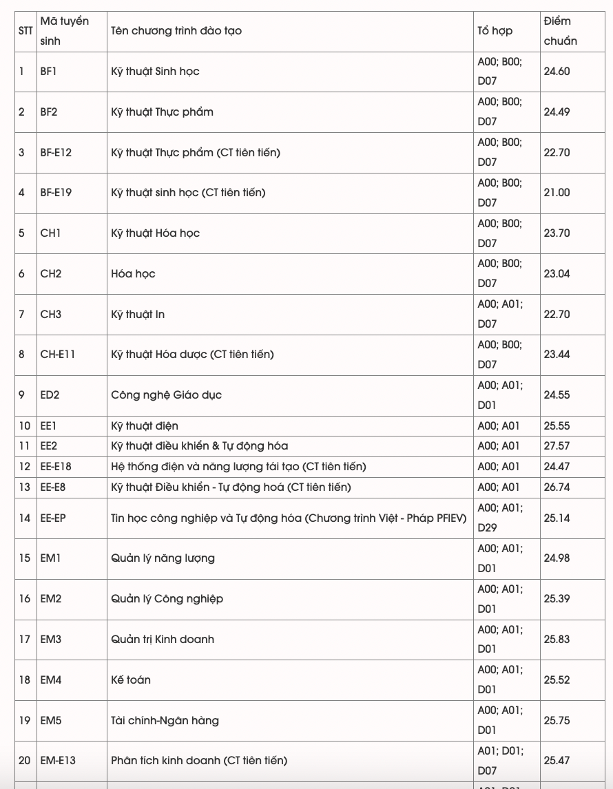 với 29,42 điểm (theo kết quả tốt nghiệp THPT). Đây cũng là số điểm chuẩn cao nhất của Đại học Bách khoa Hà Nội trong 3 năm trở lại đây.