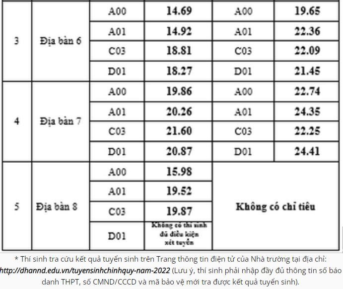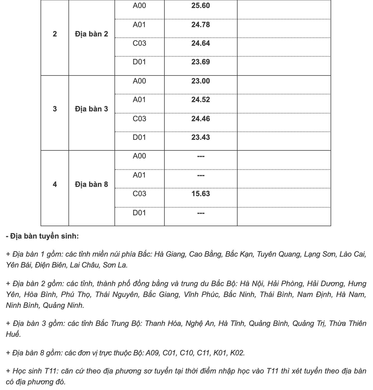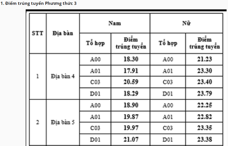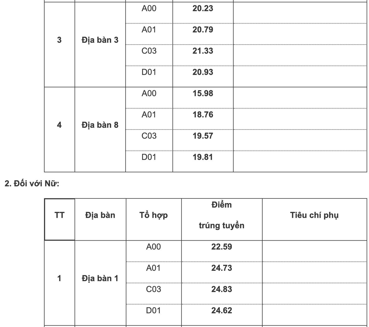 Hội đồng tuyển sinh Trường Đại học Cảnh sát Nhân dân thông báo điểm trúng tuyển theo phương thức 3 - xét tuyển theo kết quả thi tốt nghiệp THPT theo các tổ hợp (A00, A01, C03, D01) kết hợp với kết quả bài thi tuyển sinh trình độ đại học CAND chính quy tuyển mới theo tổ hợp (CA1, CA2), gọi tắt là bài thi Bộ Công an.
