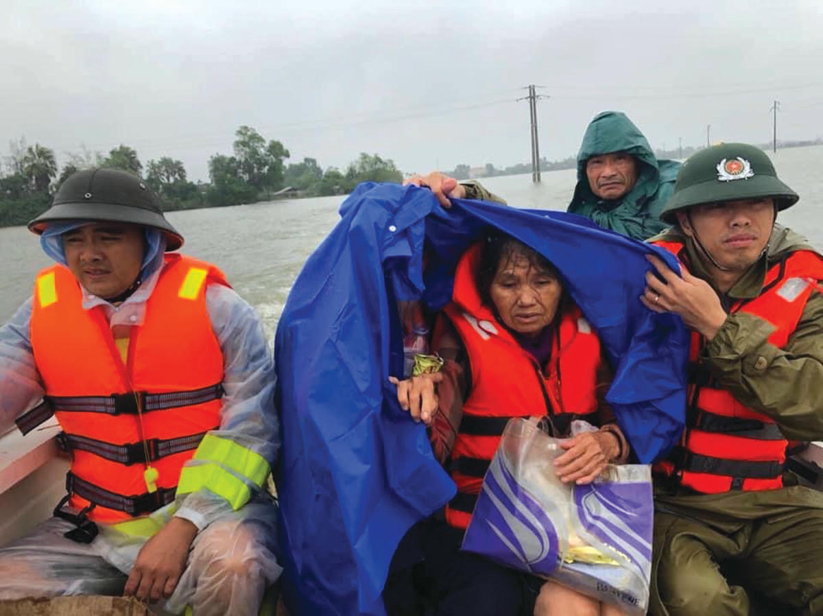 Nhớ lại khoảnh khắc nhận được chiếc bánh chưng từ đoàn cứu trợ, bà Lê Thị Mại (49 tuổi, thôn Phan Chu Trinh, xã Cẩm Duệ, Cẩm Xuyên, Hà Tĩnh) vẫn không khỏi xúc động: “Suốt đêm 18/10, sang đến cả ngày 19/10, vợ chồng tôi lái đò chở người trong thôn lên sơ tán.