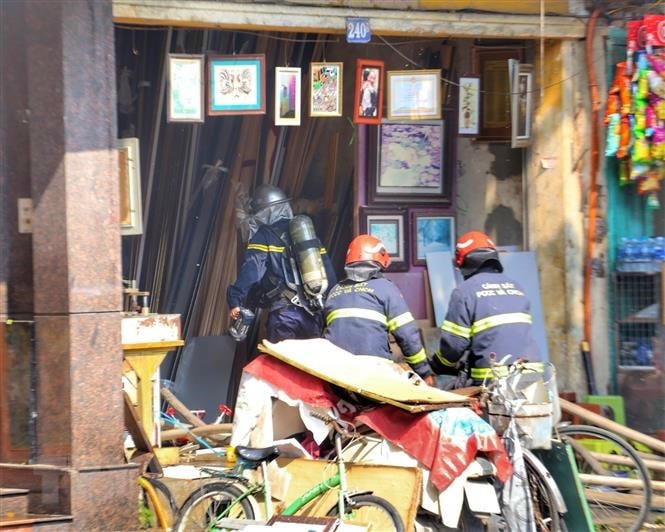 Công an quận Hoàn Kiếm xuất hai xe chữa cháy đến hiện trường. Qua trinh sát, lực lượng chức năng xác định cháy tại nhà ở kết hợp kinh doanh. Nhà cao 2 tầng + 1 tum (tầng 1 cho thuê để bán khung tranh, tầng 2 và tầng tum chủ nhà để ở), diện tích mặt bằng khoảng 70 m2. Khi xảy ra cháy, 4 người là nhân viên của cửa hàng tranh đang trong nhà.