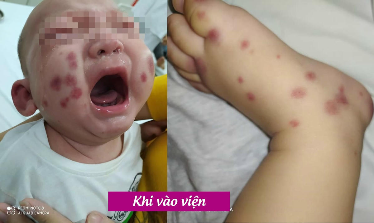 Theo đó, bé trai Đ.N.D (6 tháng tuổi, trú tại huyện Vĩnh Tường, tỉnh Vĩnh Phúc) được gia đình đưa đến Bệnh viện khám trong tình trạng vành tai, má, tay và chân xuất hiện những mảng xuất huyết tím đen, đối xứng nhau. Vài giờ sau khi vào viện, trẻ tiếp tục đột ngột phát ban trên bàn tay, bàn chân kèm theo sưng nề, đau hai bên cẳng chân, cẳng tay và bàn chân. Trước đó trẻ có sốt một ngày, tiền sử trẻ khỏe mạnh, gia đình không có người mắc các bệnh rối loạn đông chảy máu.